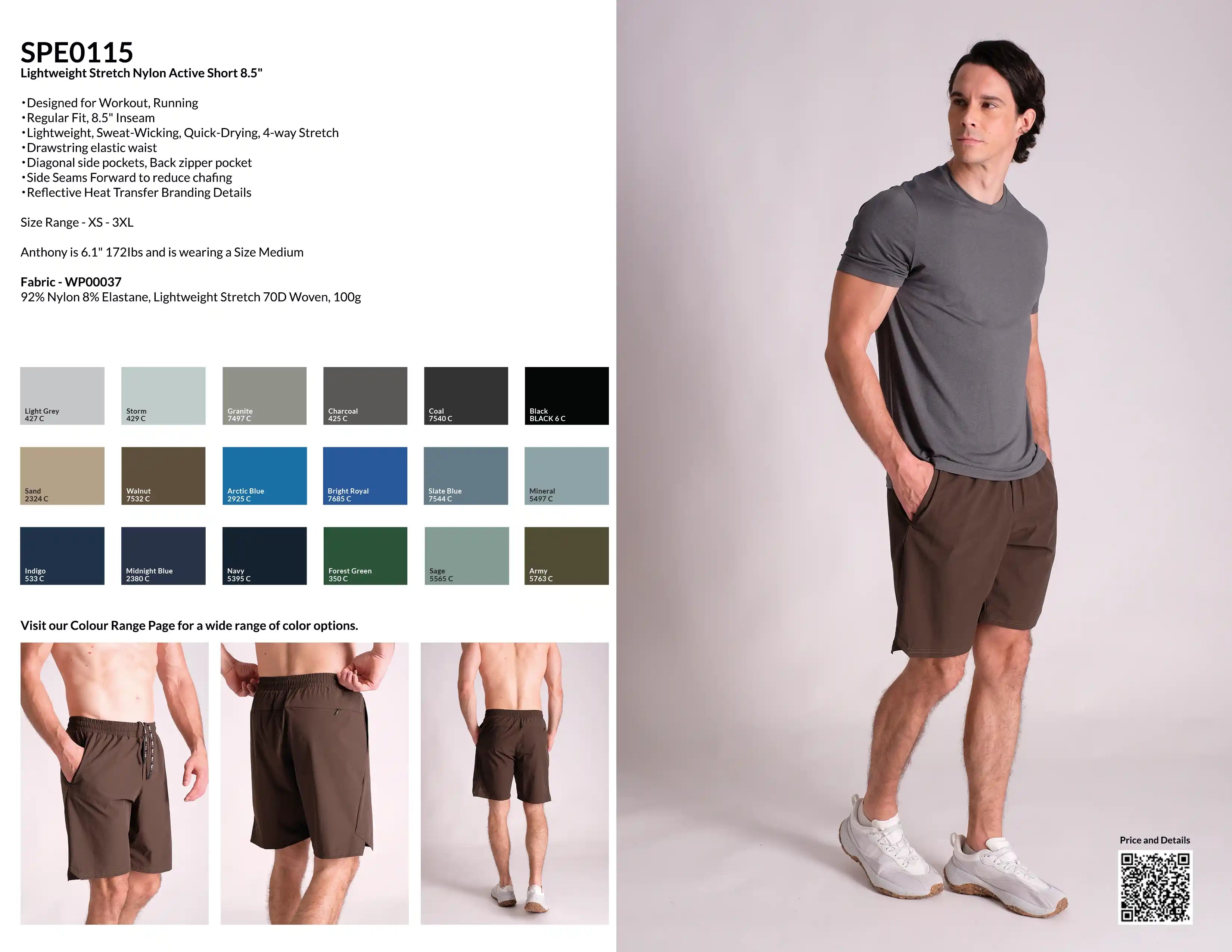 SPE0115 - Lightweight Stretch Nylon Performance Short 8.5" - Army
