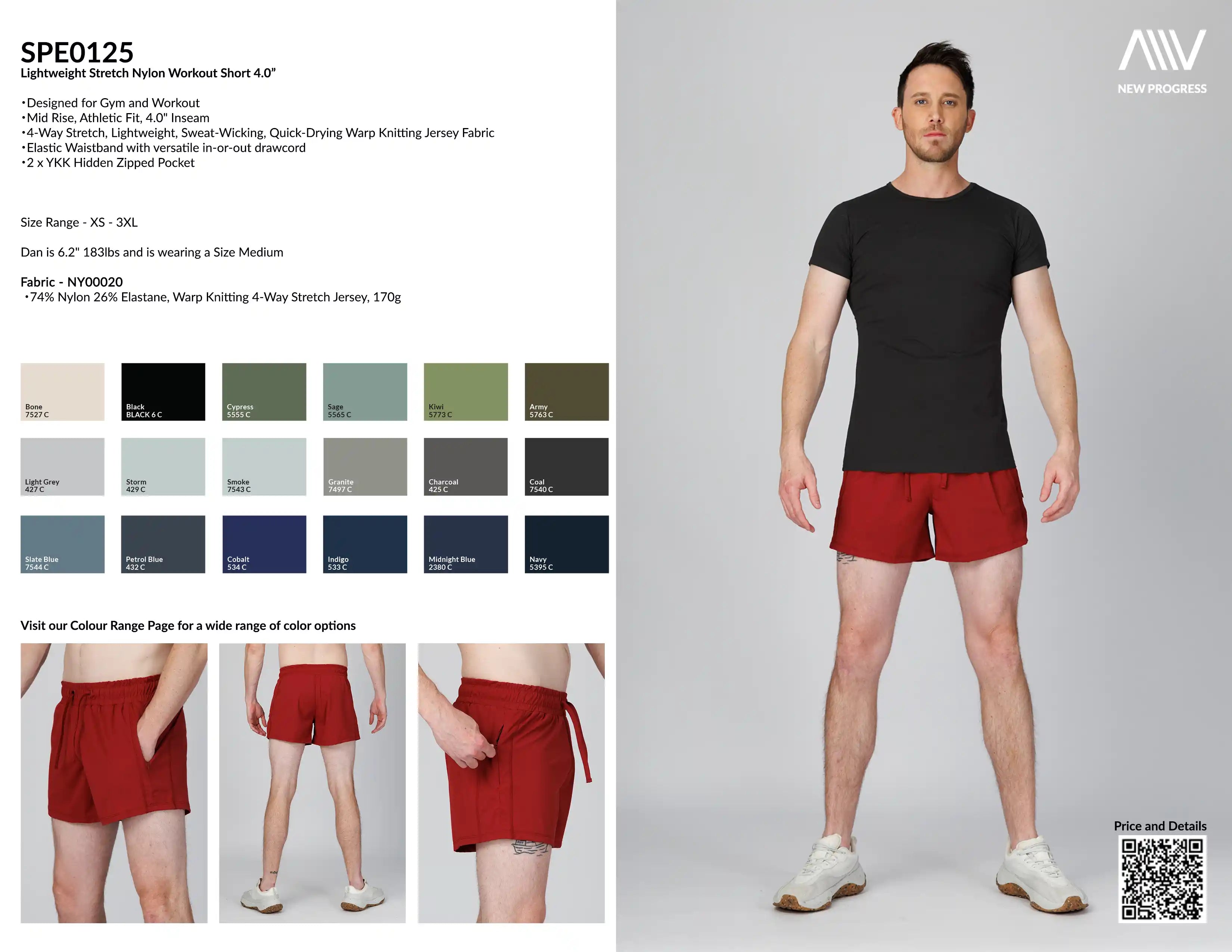 SPE0125 - Lightweight Stretch Nylon Workout Short 4.0" - Wine