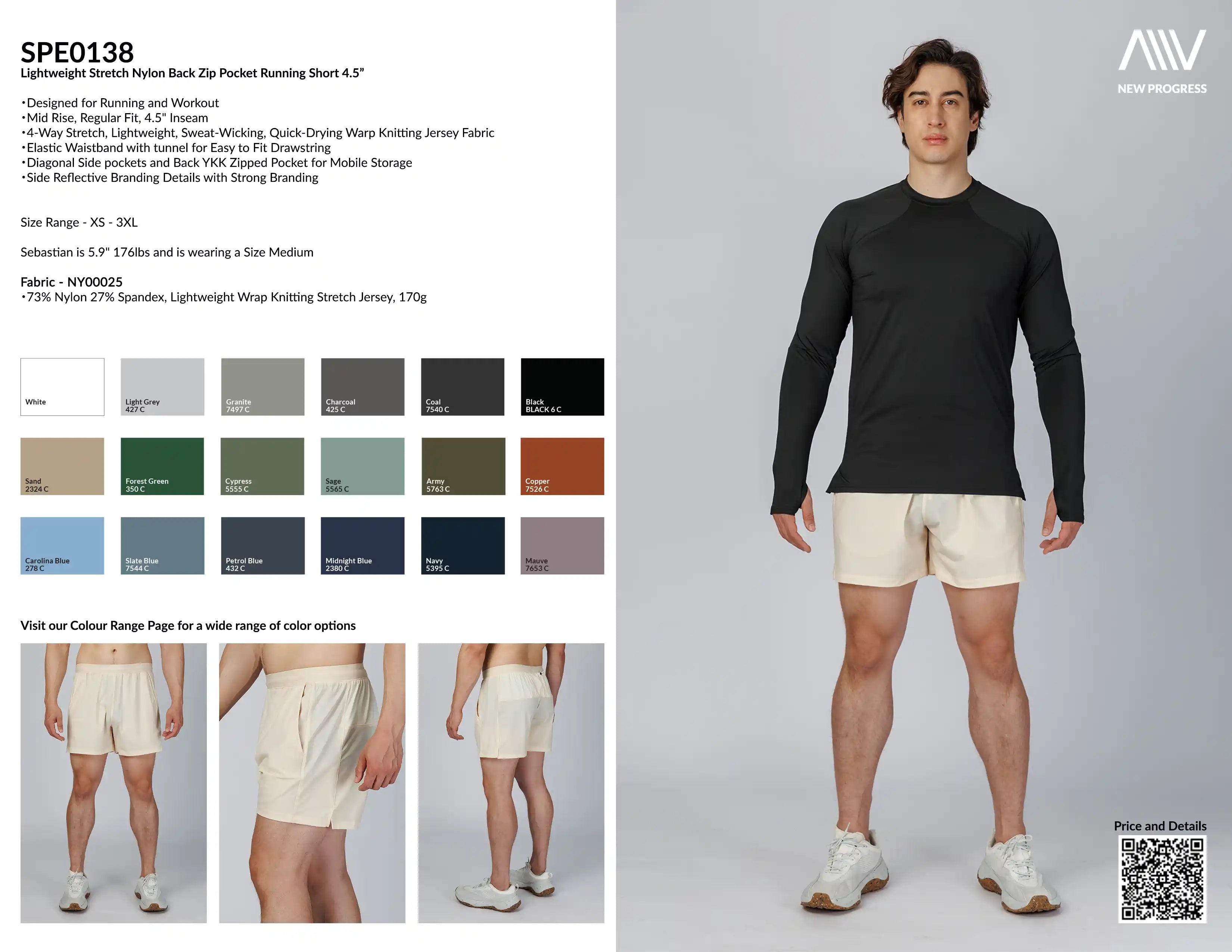 SPE0138 - Lightweight Stretch Nylon Back Zip Pocket Running Short 4.5" - Cream