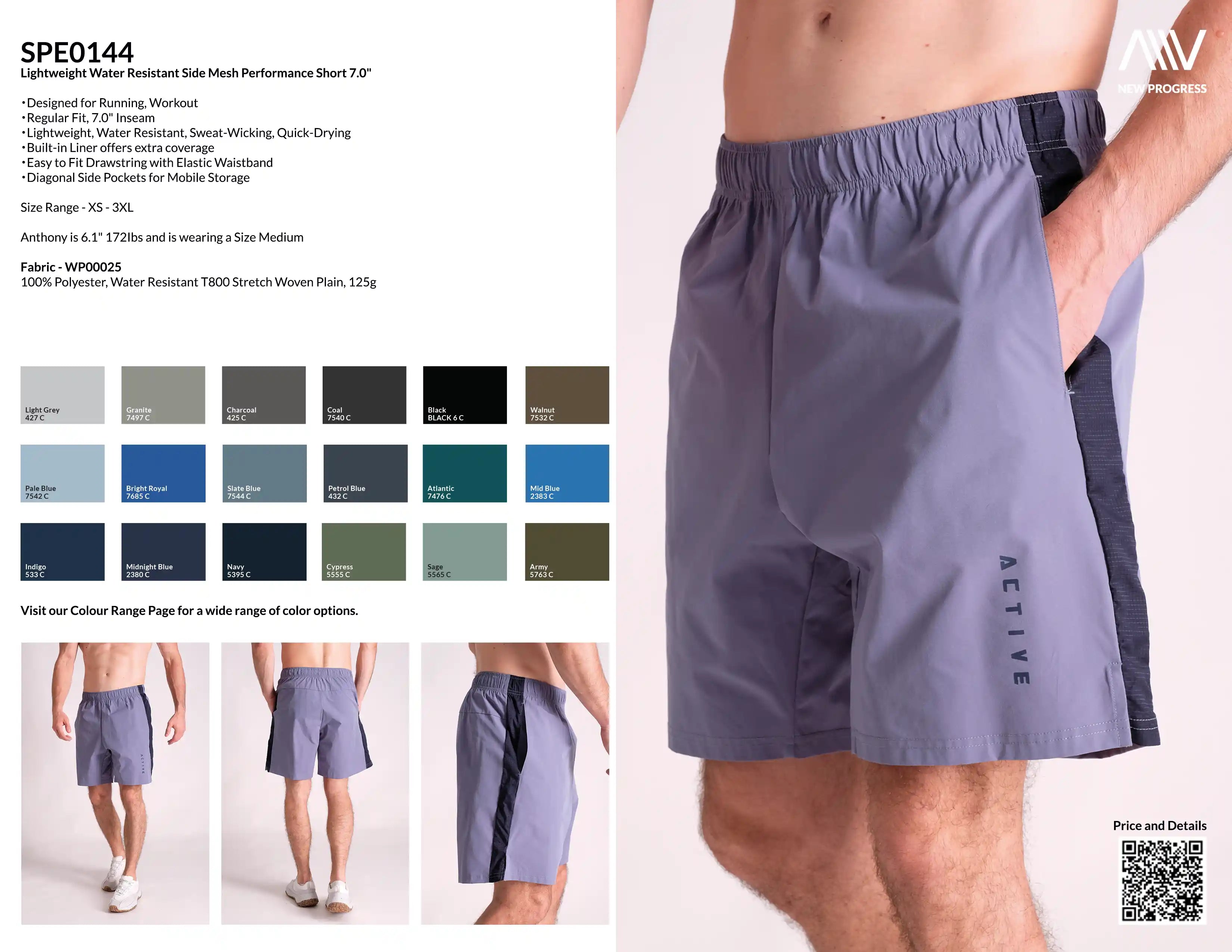 SPE0144 - Lightweight Water Resistant Side Mesh Performance Short 7.0" - Slate