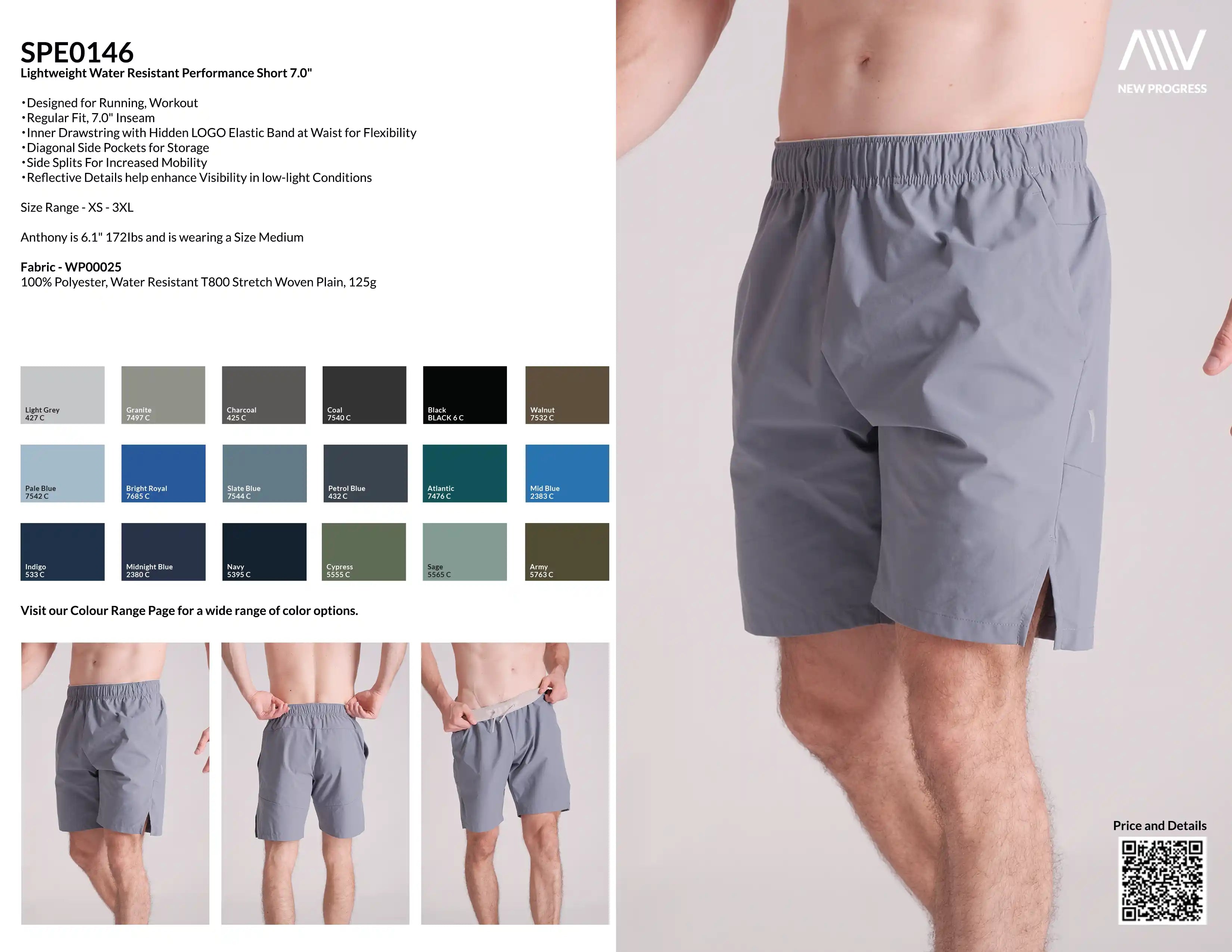 SPE0146 - Lightweight Water Resistant Performance Short 7.0" - SLATE