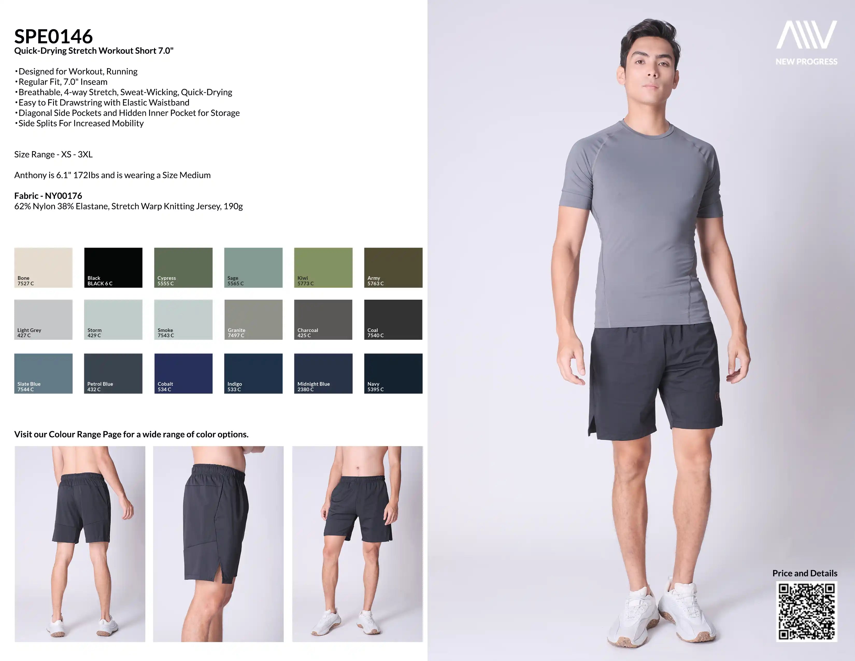 SPE0146 - Quick-Drying Stretch Workout Short 7.0" - Black