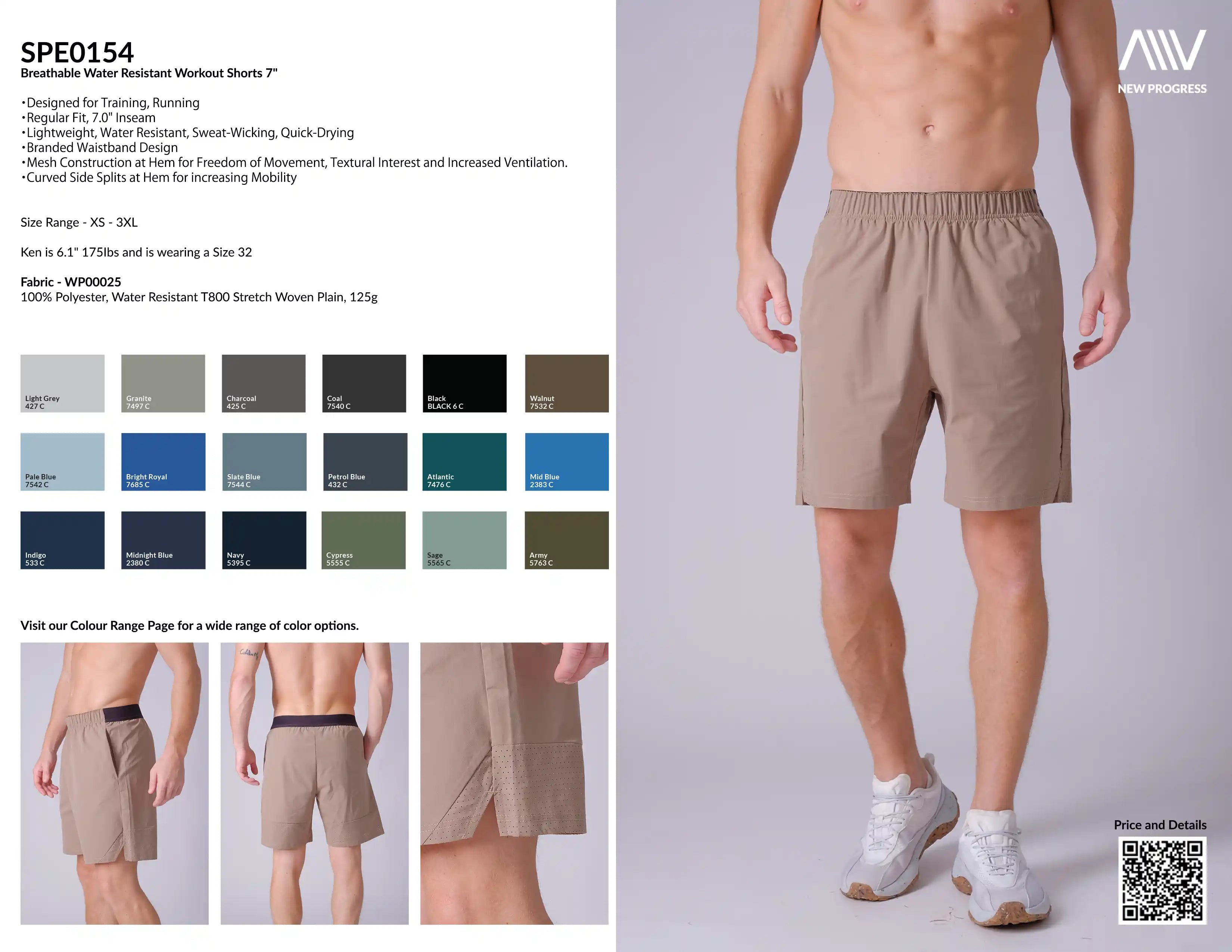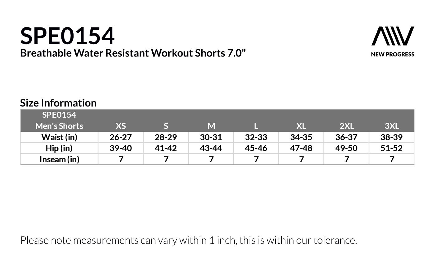 SPE0154 - Breathable Water Resistant Workout Shorts 7" - Black