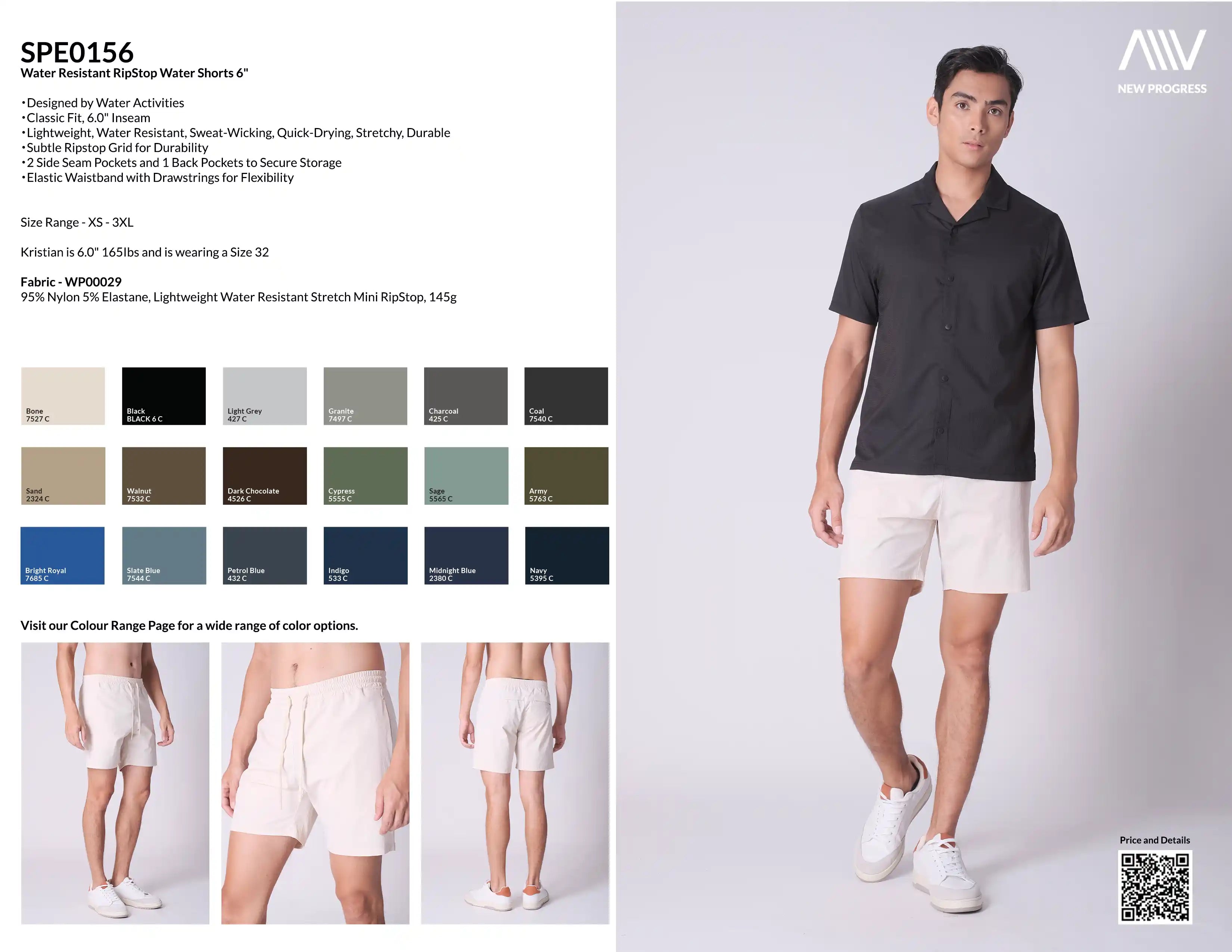 SPE0156 - Water Resistant RipStop Water Shorts 6" - Ash Blue