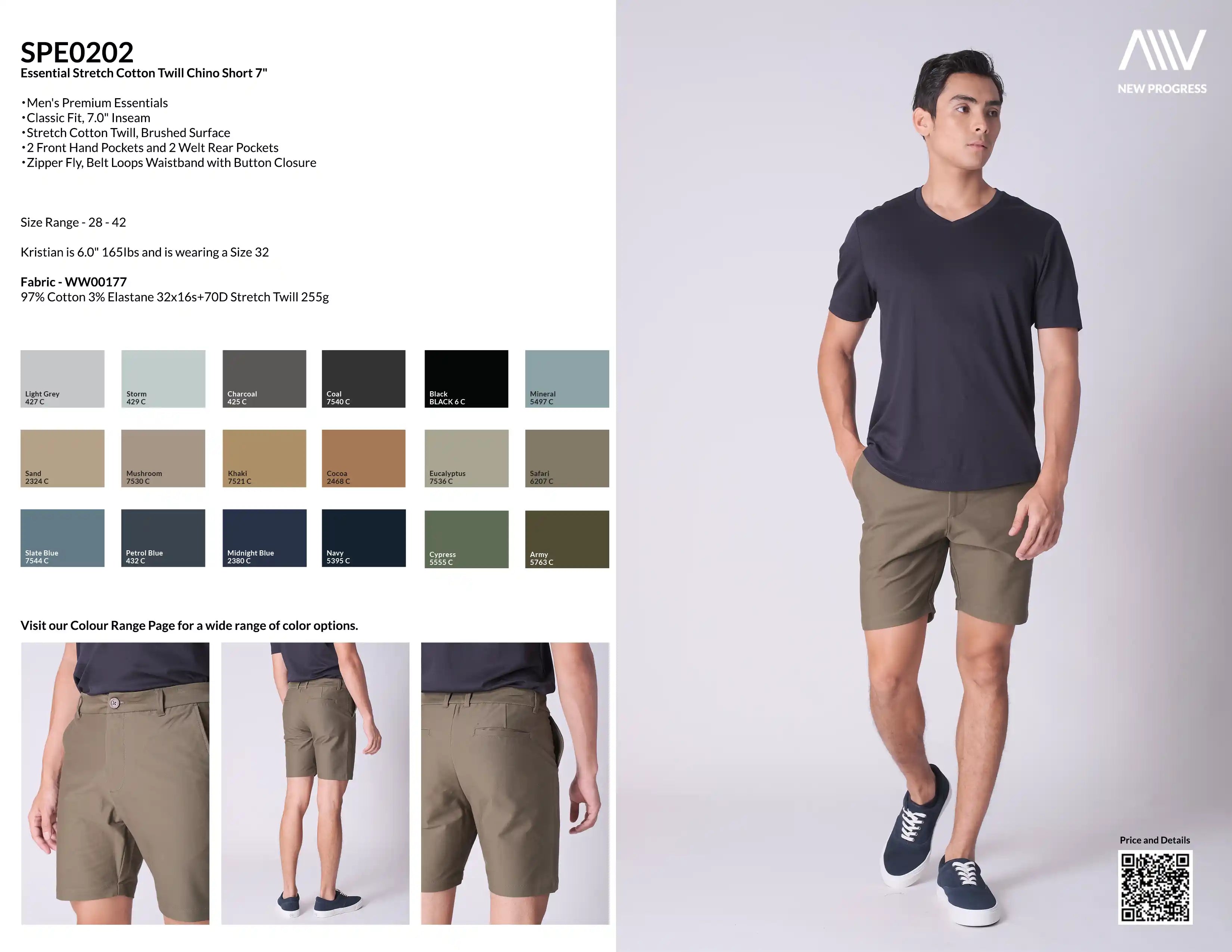 SPE0202 - Essential Stretch Cotton Twill Chino Short 7" - Army