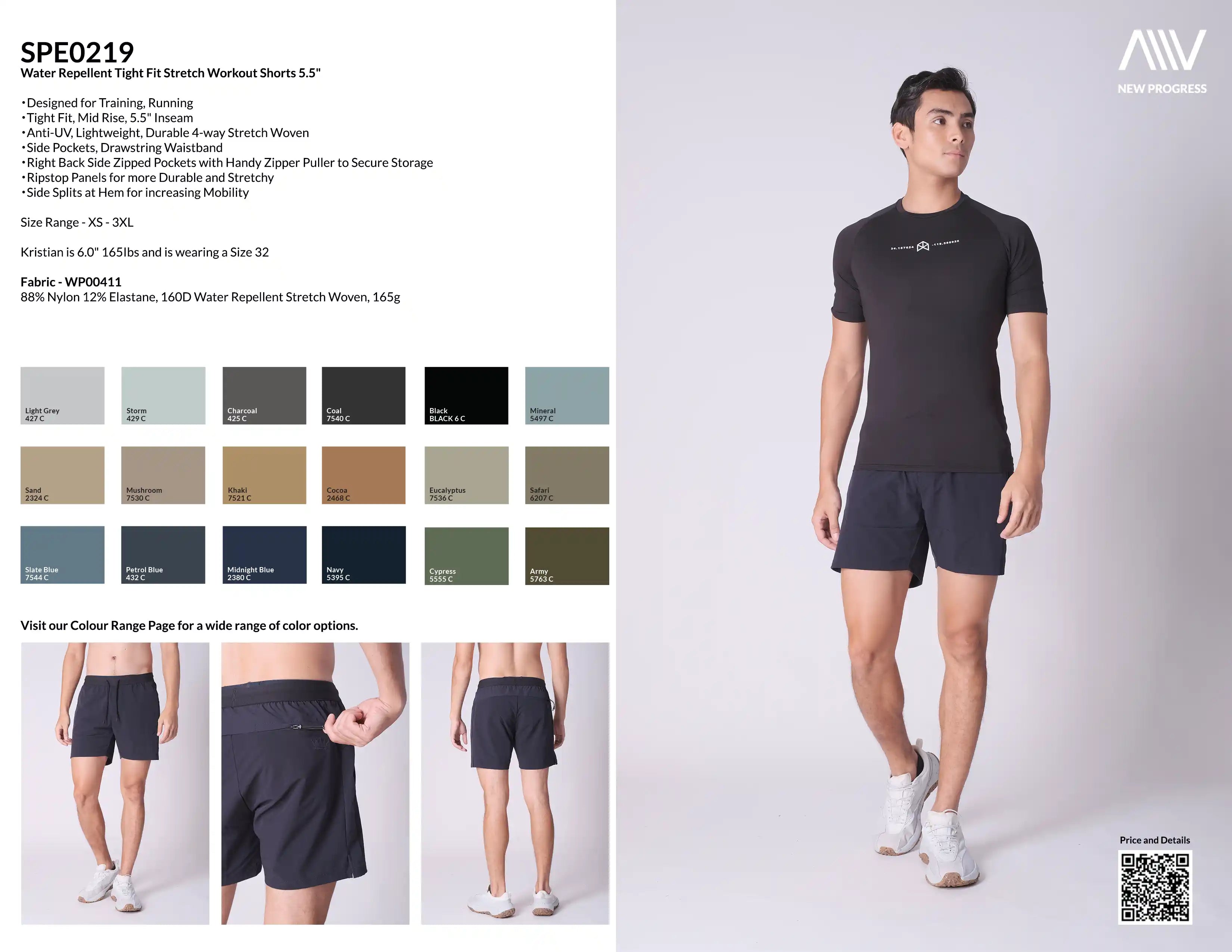 SPE0219 - Water Repellent Tight Fit Stretch Workout Shorts 5.5" - Black
