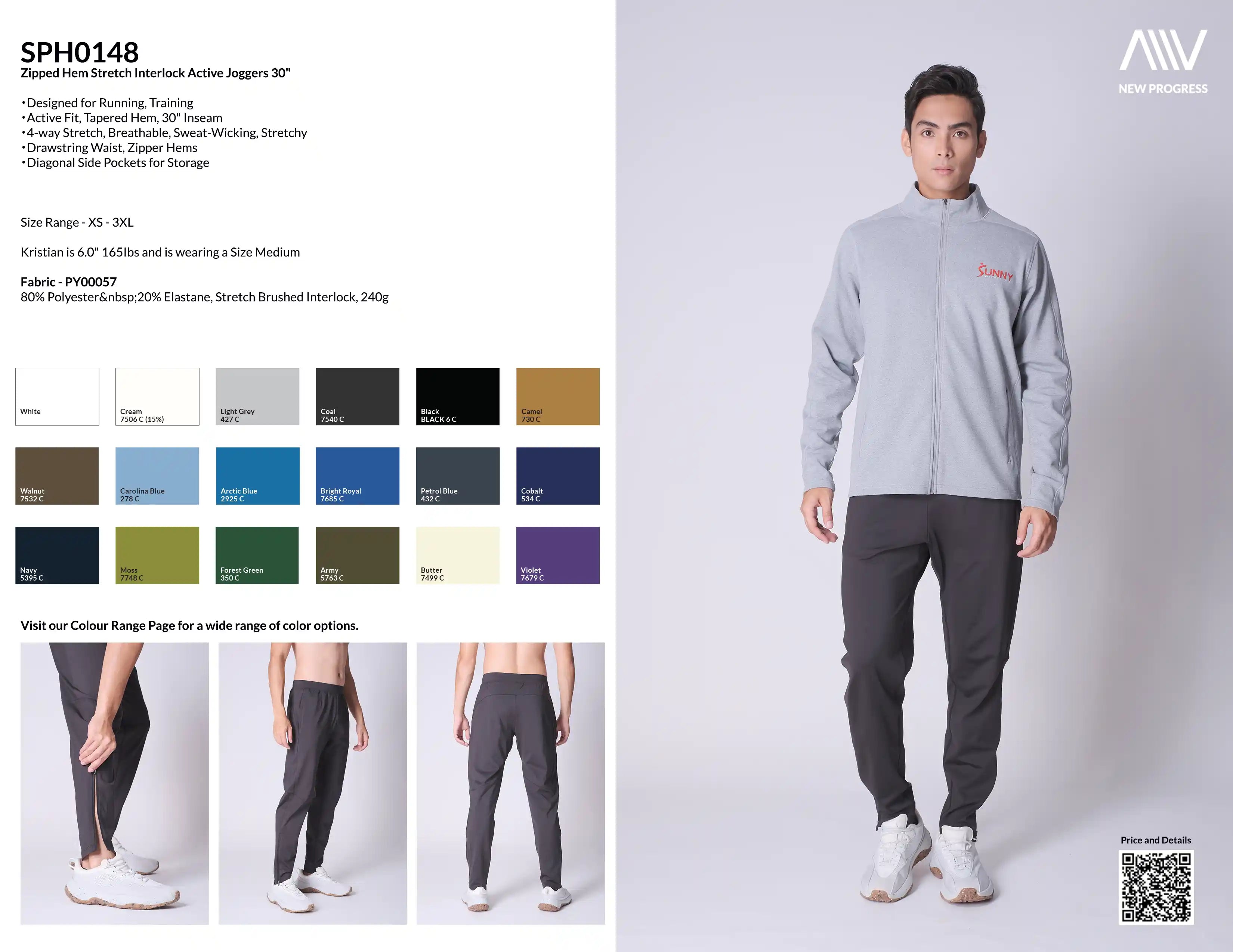 SPH0148 - Insulated 4-Way Stretch Interlock Zipped Hem Performance Joggers 30" - Black