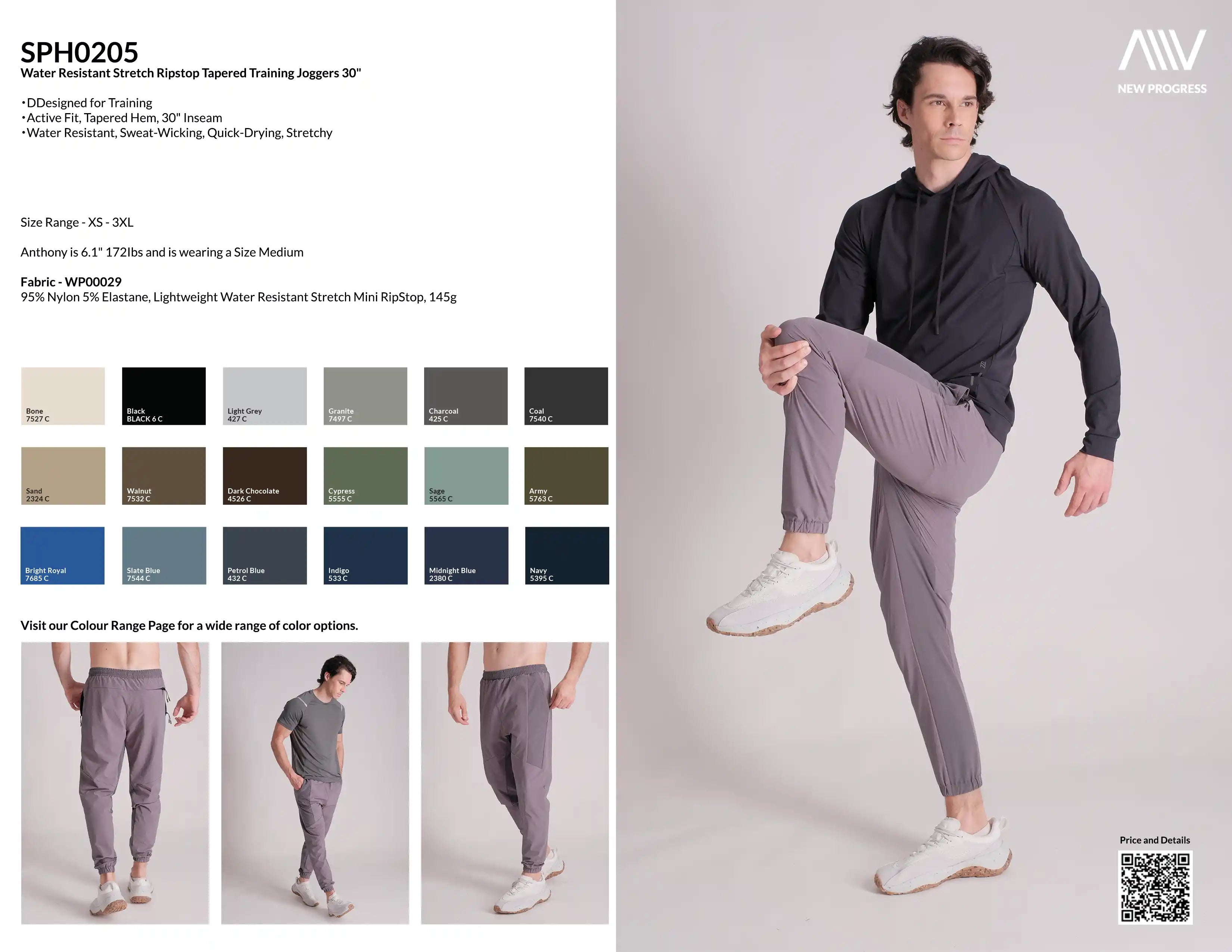 SPH0205 - Water Resistant Stretch Ripstop Tapered Training Joggers 30" - Dark Grey