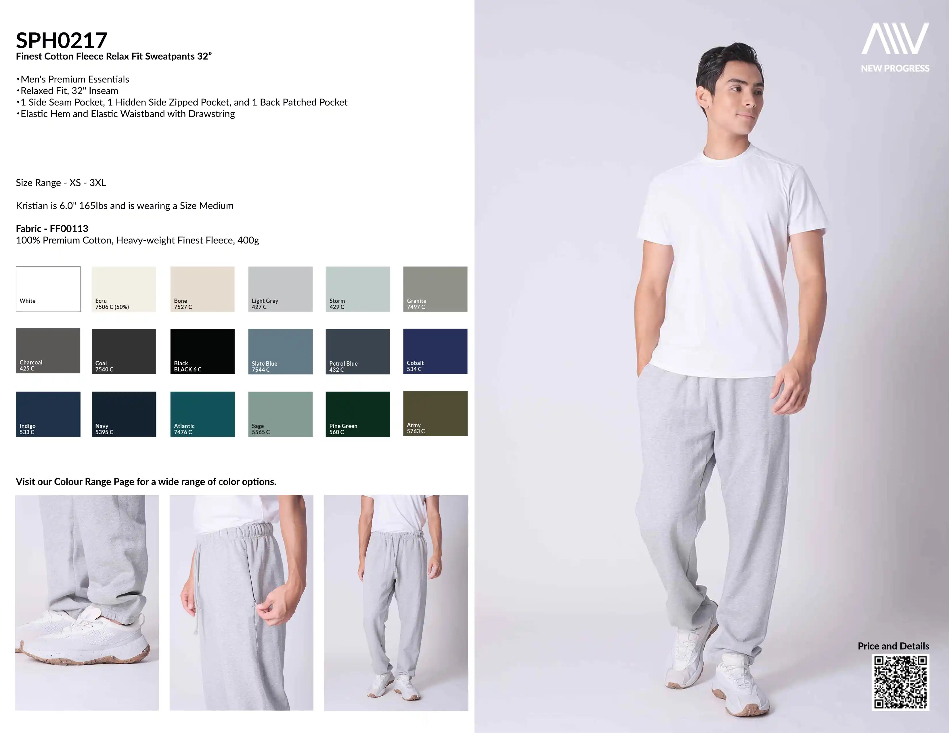 SPH0217 - Finest Cotton Fleece Relax Fit Sweatpants 32” - Heather Grey