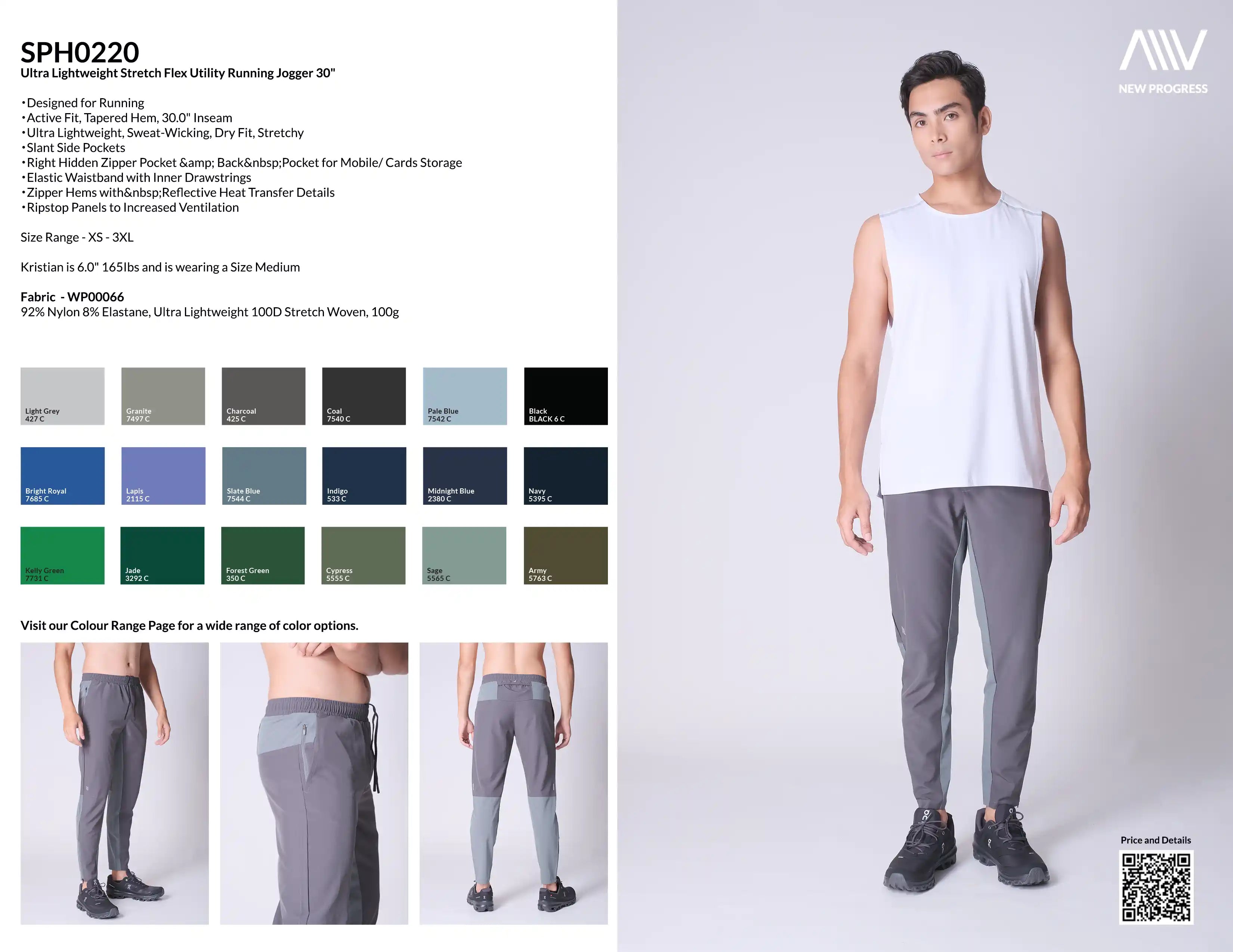 SPH0220 - Ultra Lightweight Stretch Flex Utility Running Jogger 30" - Black