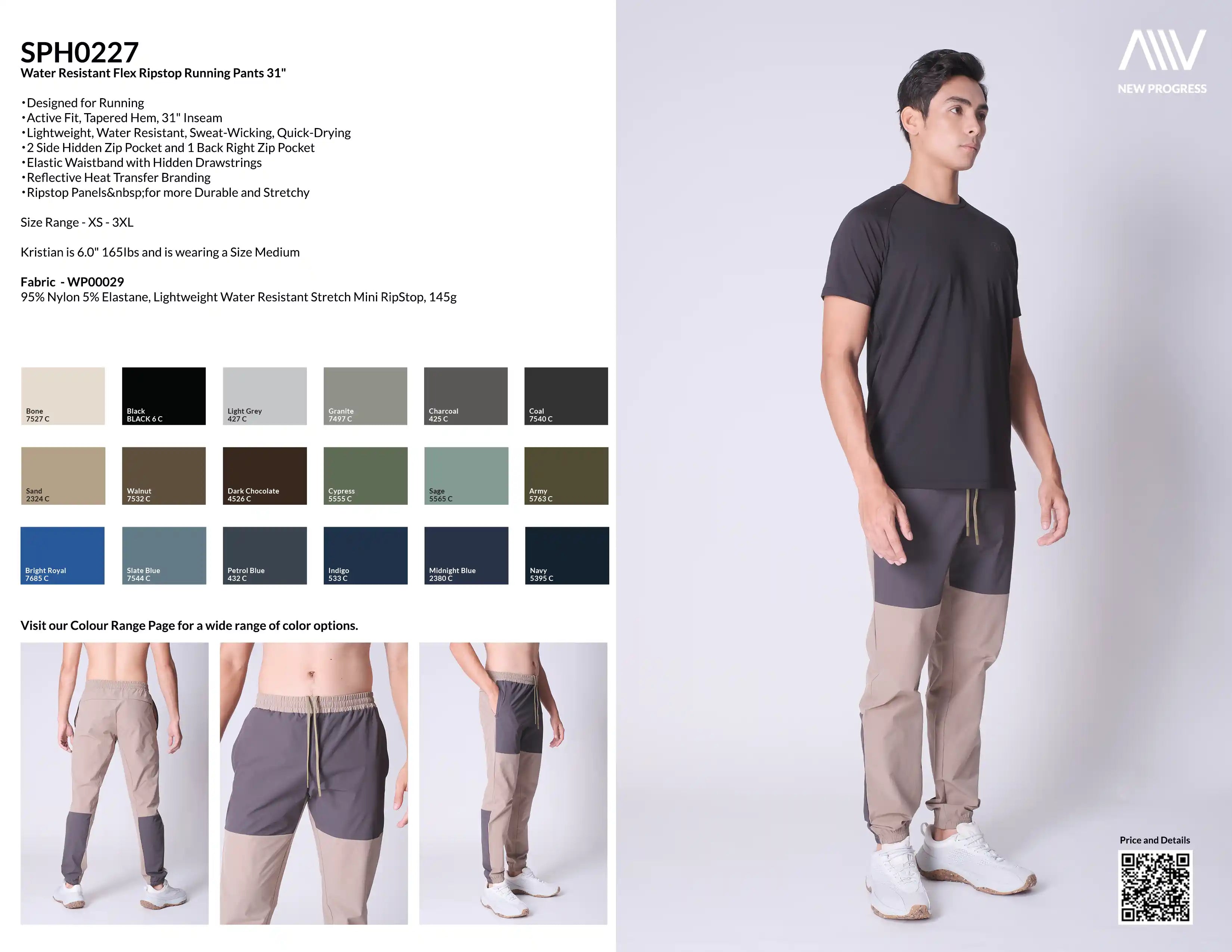 SPH0227 - Water Resistant Flex Ripstop Workout Pants 30" - Khaki/Grey