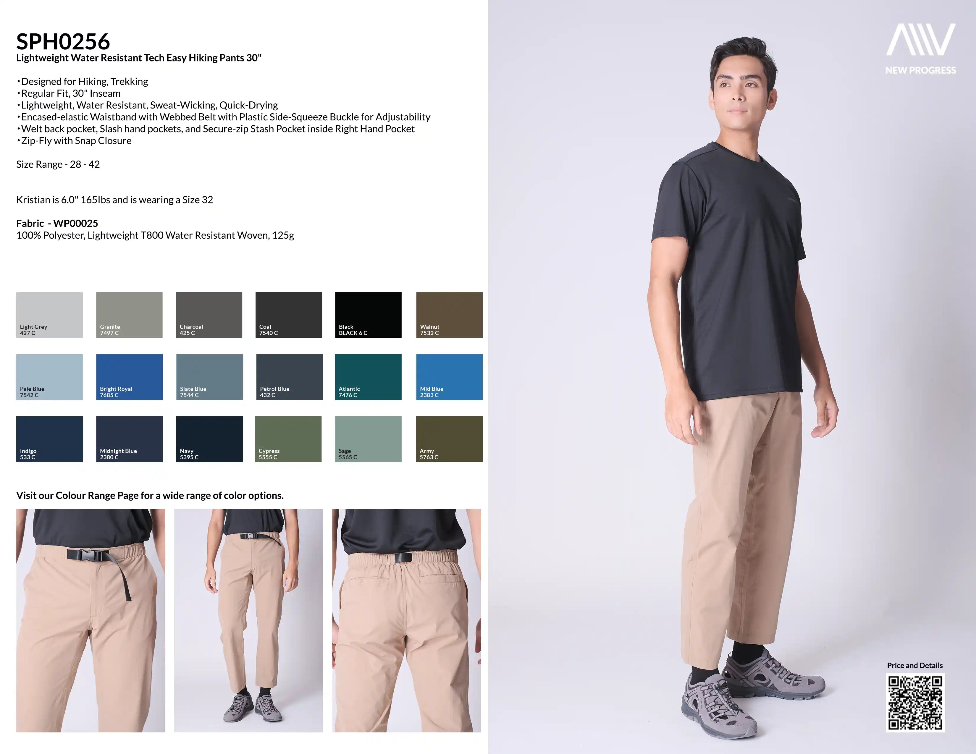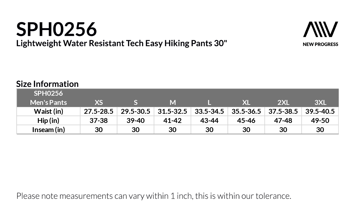 SPH0256 - Lightweight Water Resistant Tech Easy Hiking Pants 30" - Khaki