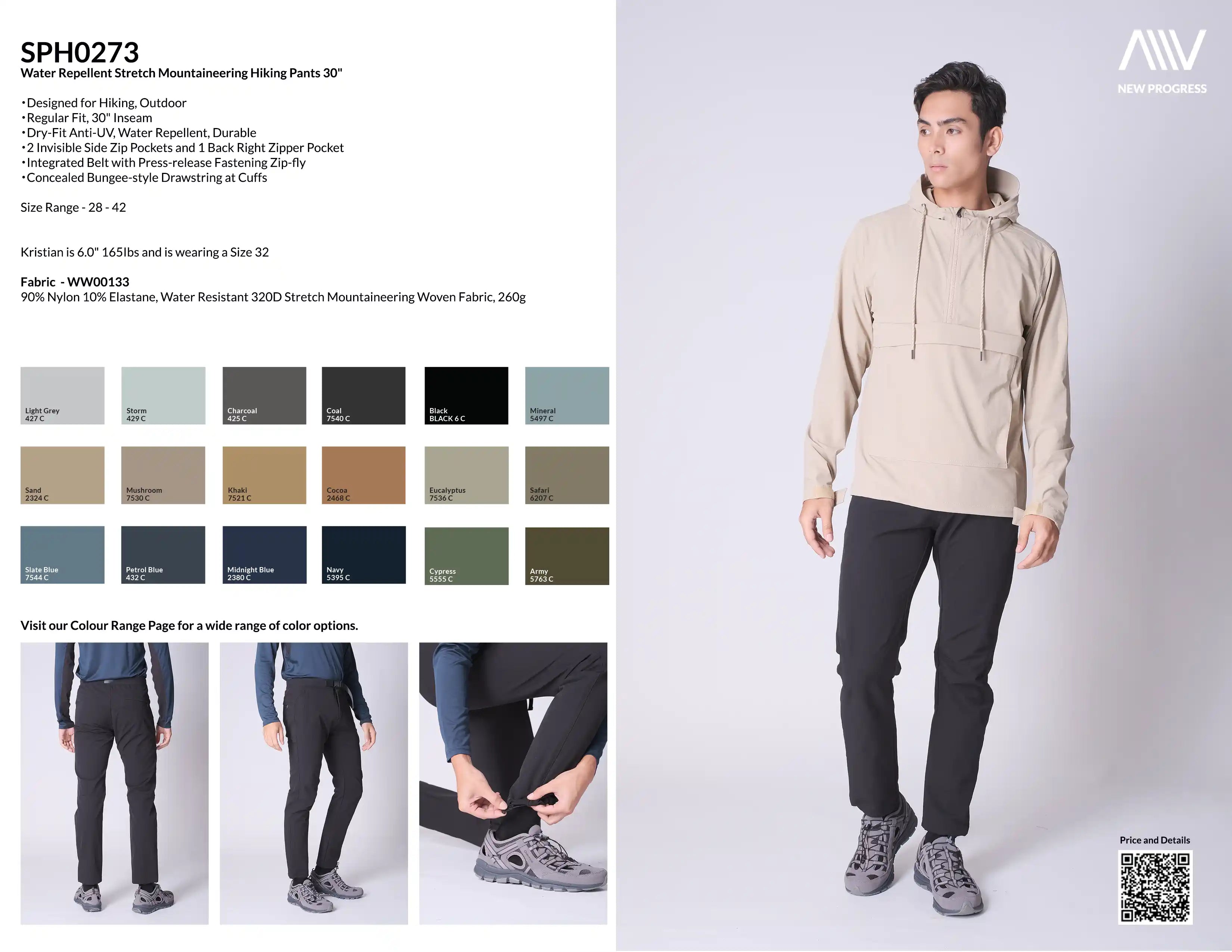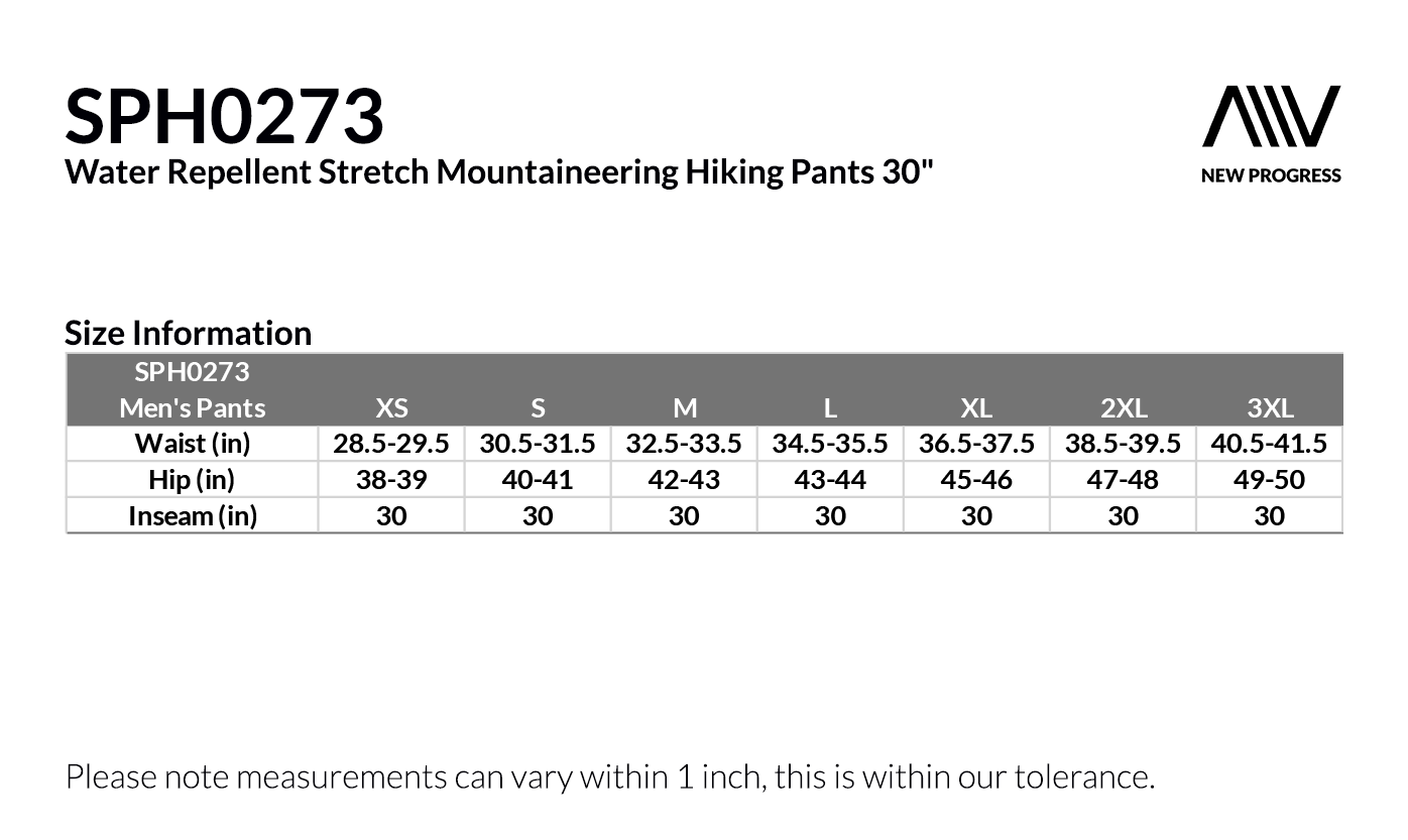 SPH0273 - Water Repellent Stretch Mountaineering Hiking Pants 30" - Black