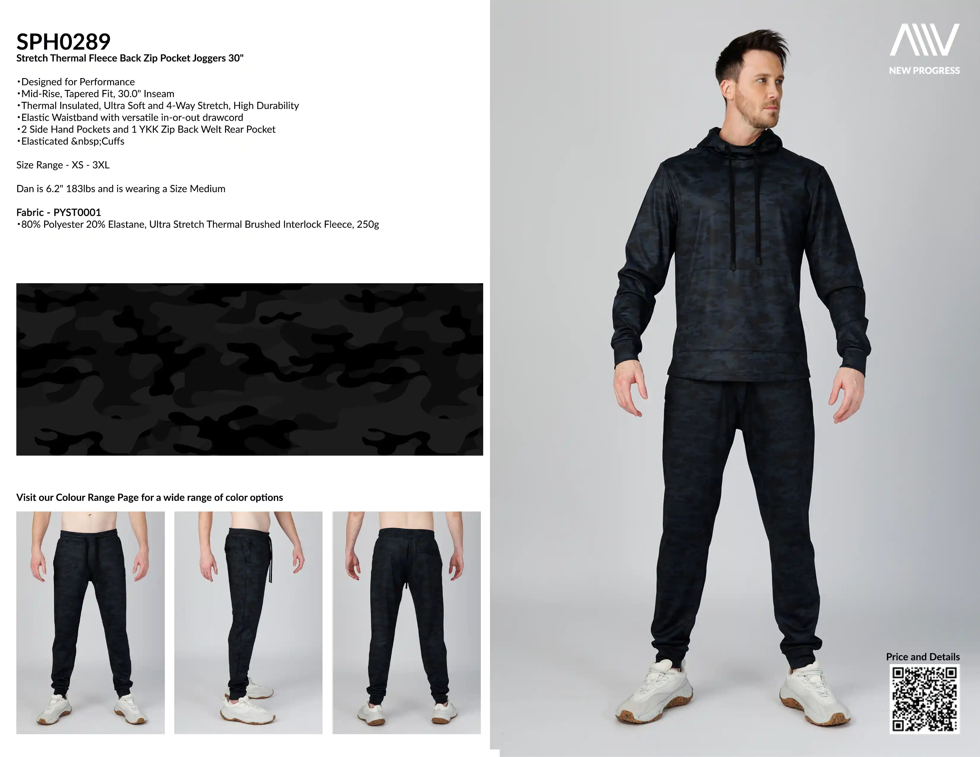 SPH0289 - Stretch Thermal Fleece Back Zip Pocket Joggers 30" - Digital Camo
