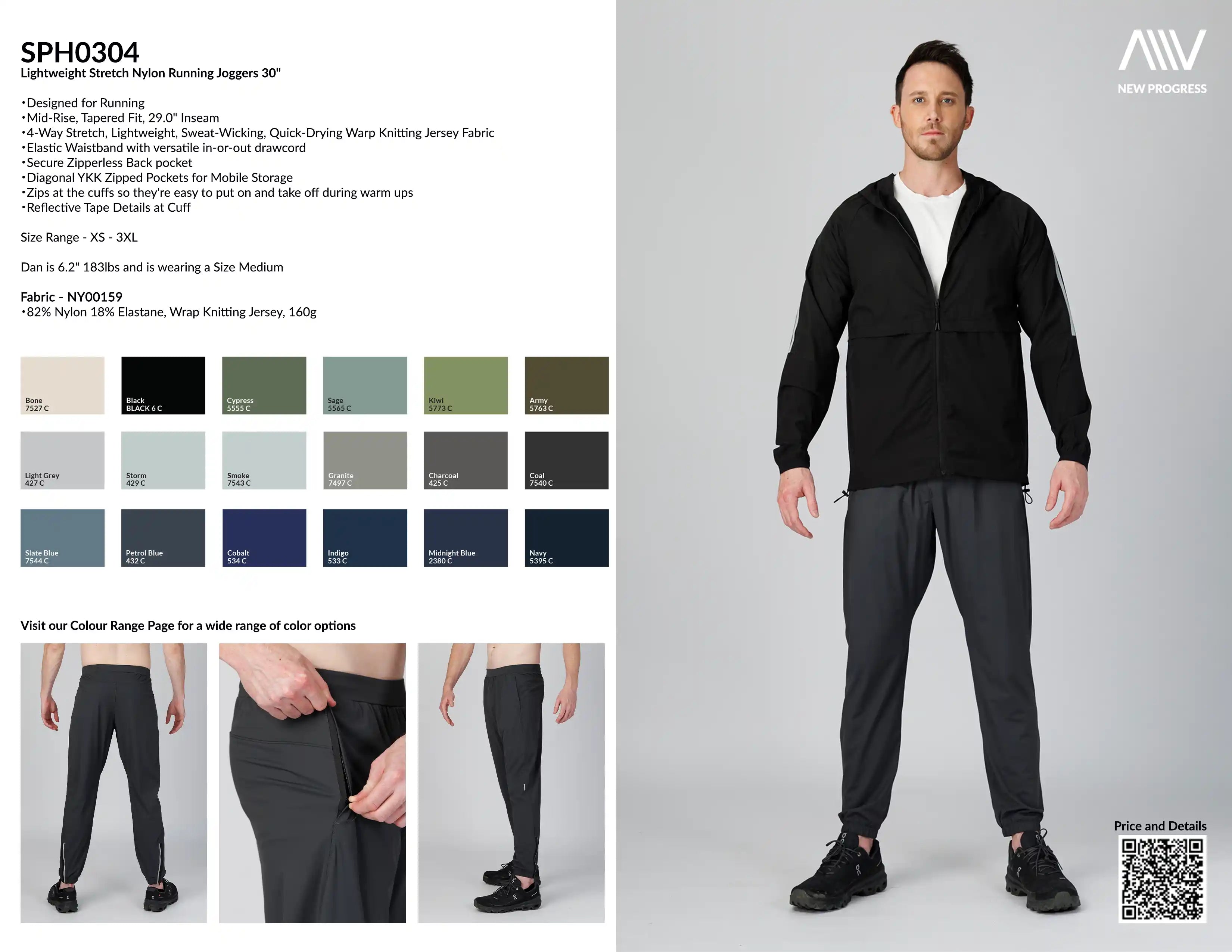 SPH0304 - Lightweight Stretch Nylon Running Joggers 30" - Dark Grey