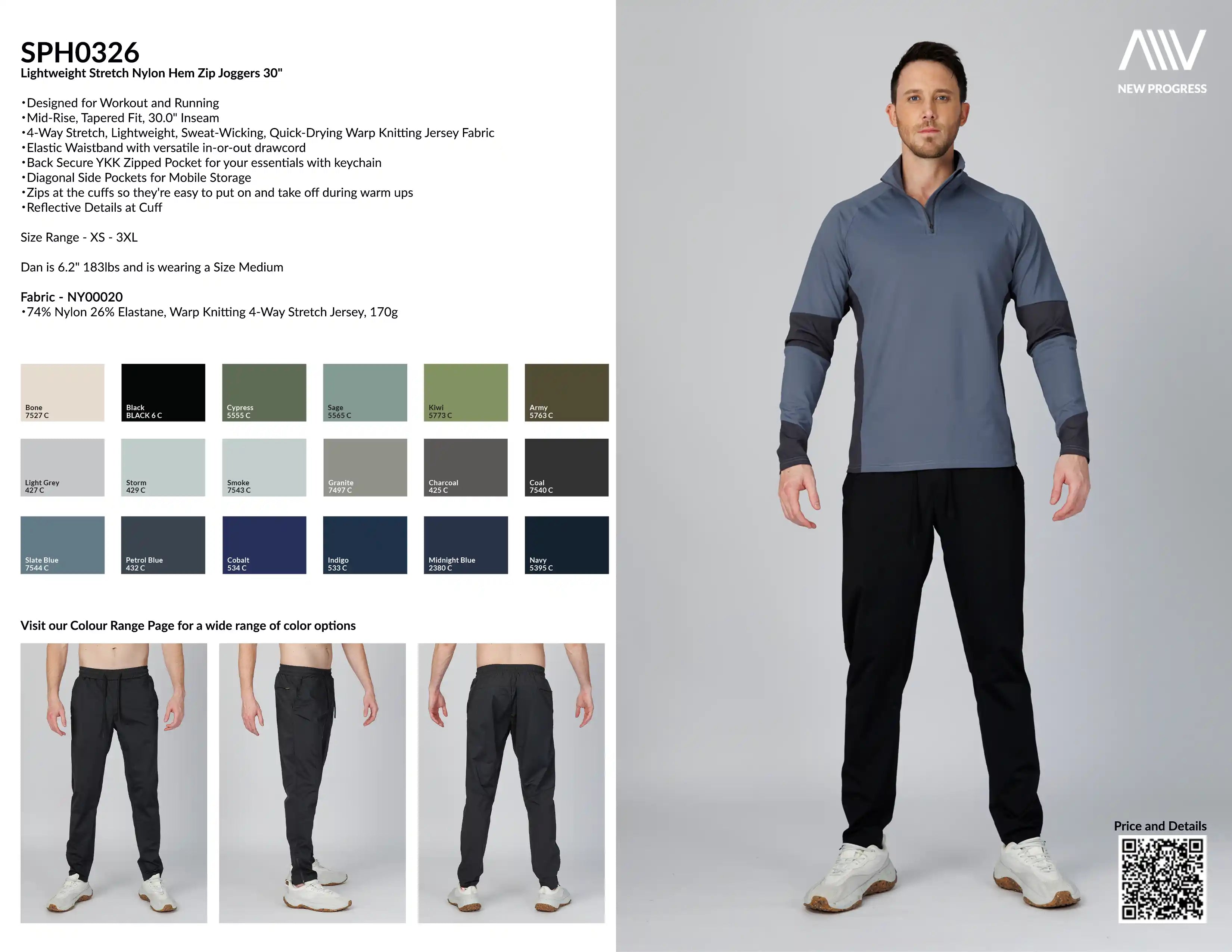 SPH0326 - Lightweight Stretch Nylon Hem Zip Joggers 30" - Black