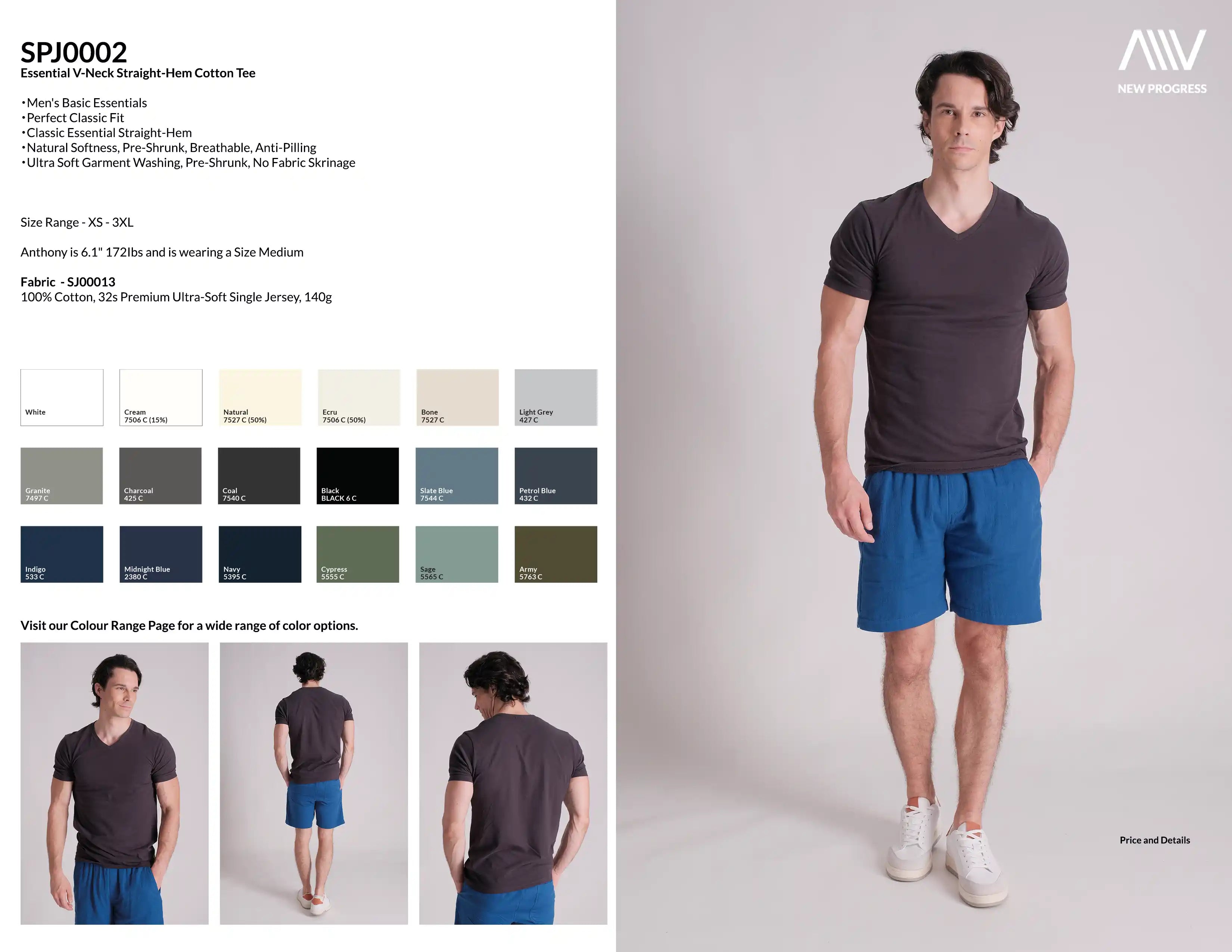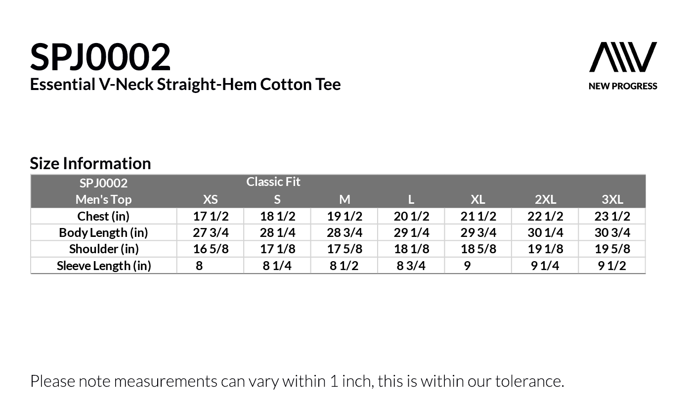 SPJ0002 - Classic Fit V-Neck Straight-Hem Essential Cotton Tee - Black