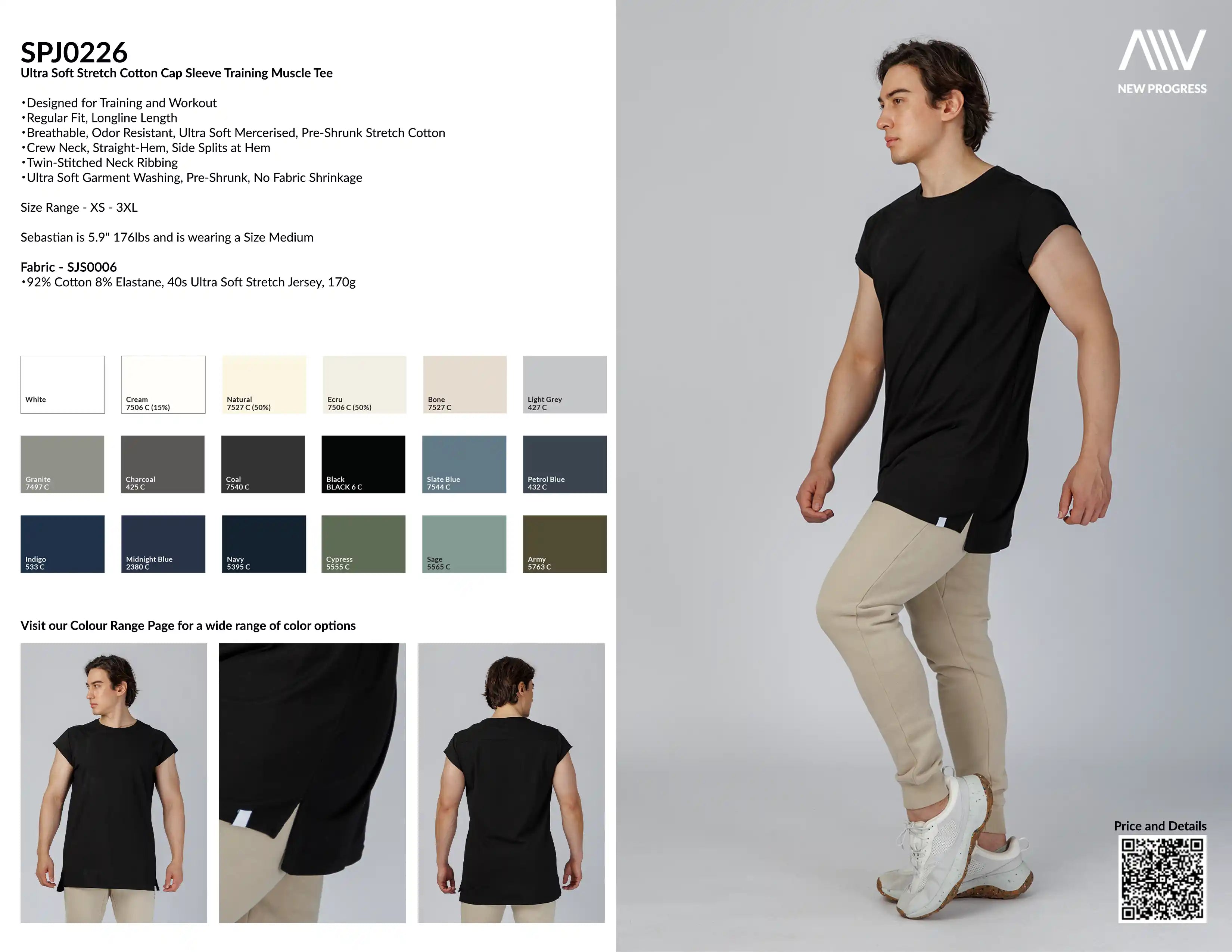 SPJ0226 - Ultra Soft Stretch Cotton Cap Sleeve Training Muscle Tee - Black