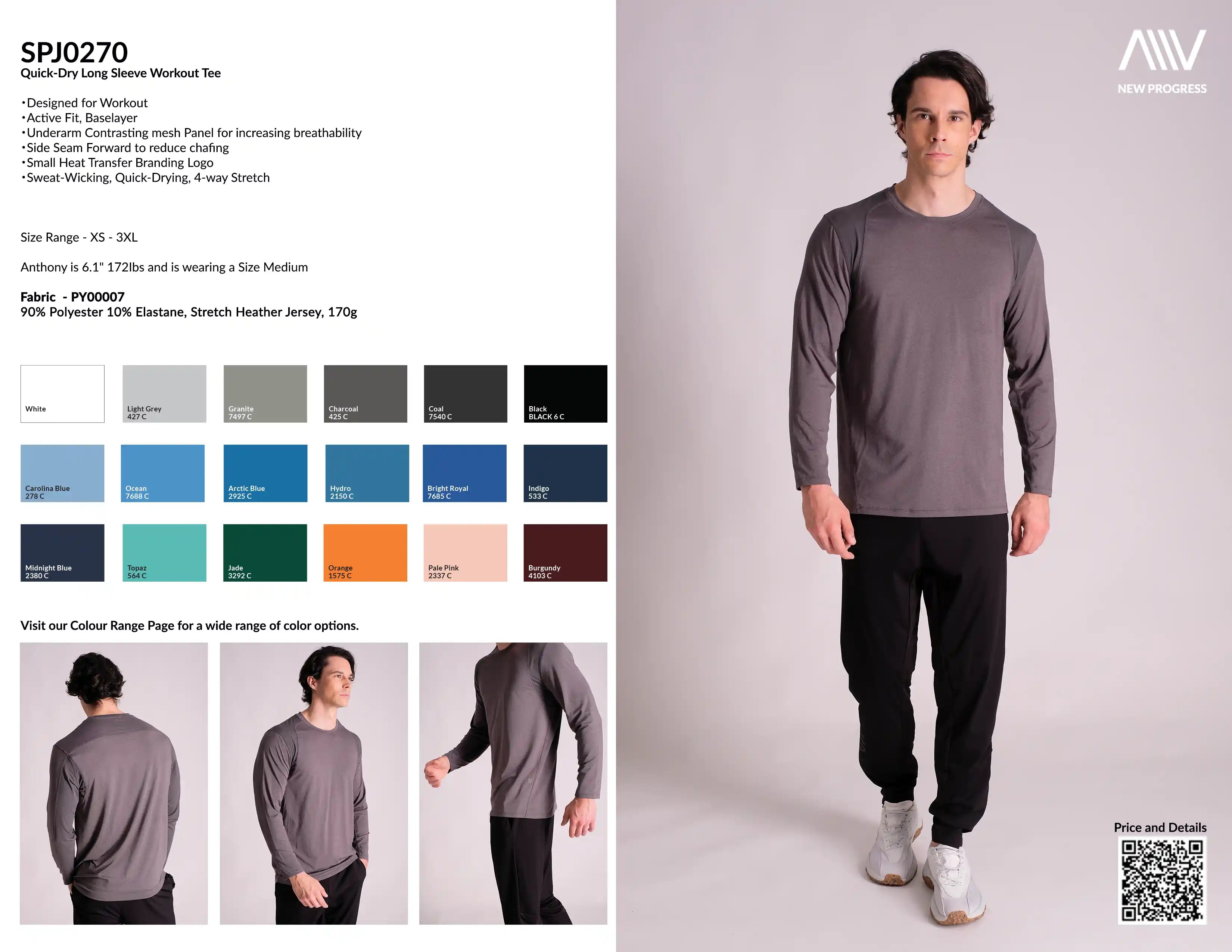 SPJ0270 - Quick-Dry Long Sleeve Workout Tee - Dark Grey