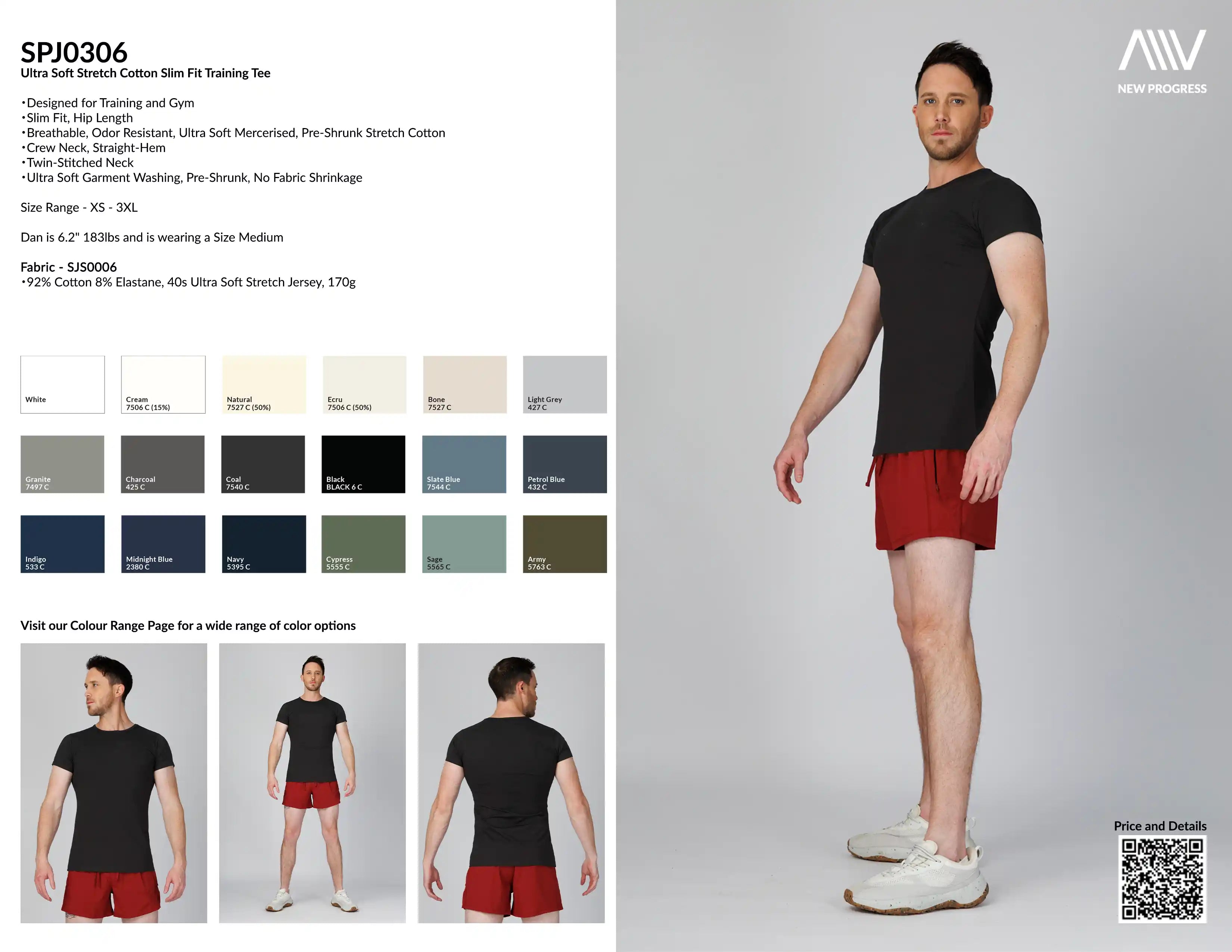 SPJ0306 - Ultra Soft Stretch Cotton Slim Fit Training Tee - Black