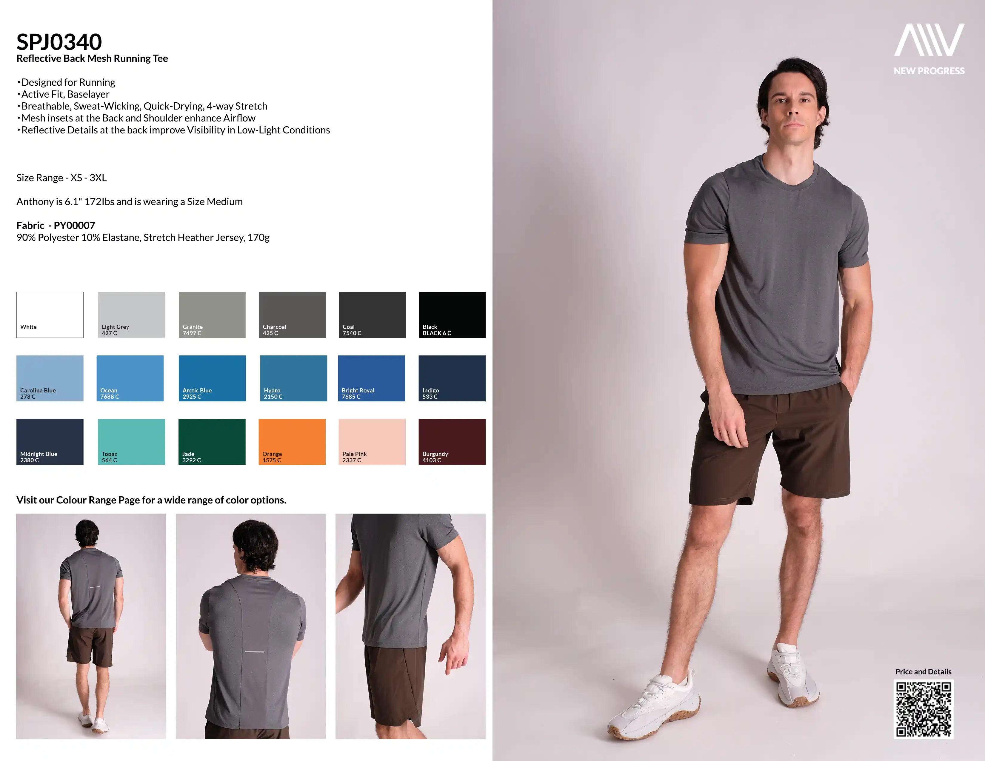 SPJ0340 - Quick Dry Stretch Reflective Back Mesh Running Tee - Heather Grey