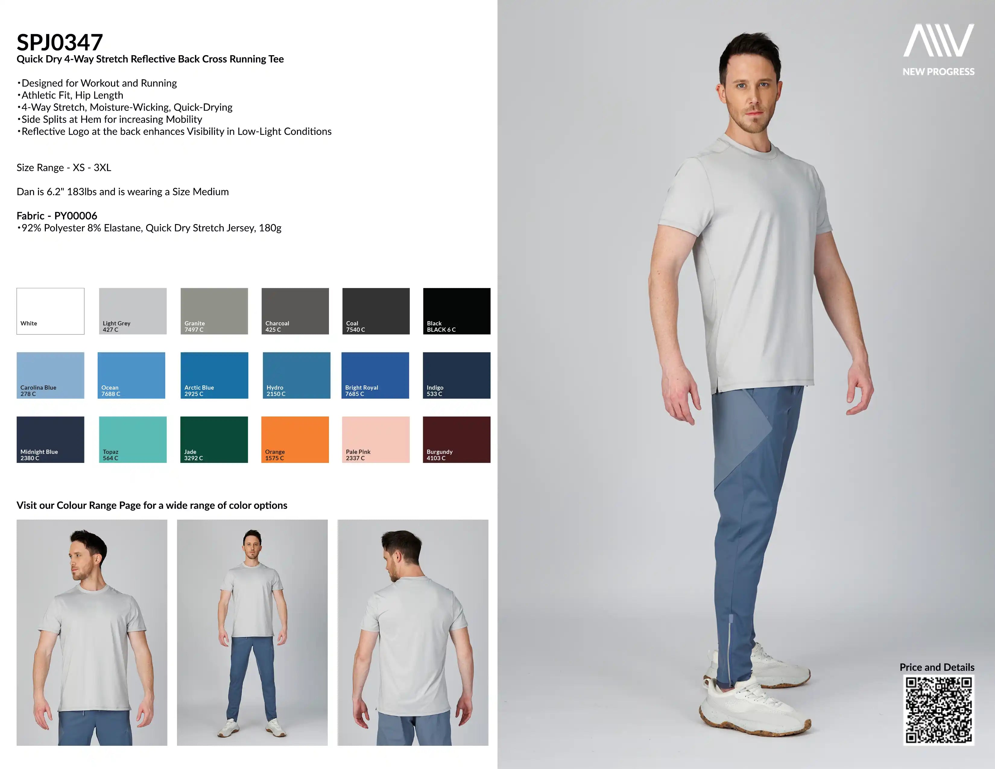 SPJ0347 - Quick Dry 4-Way Stretch Reflective Back Cross Running Tee - Light Grey