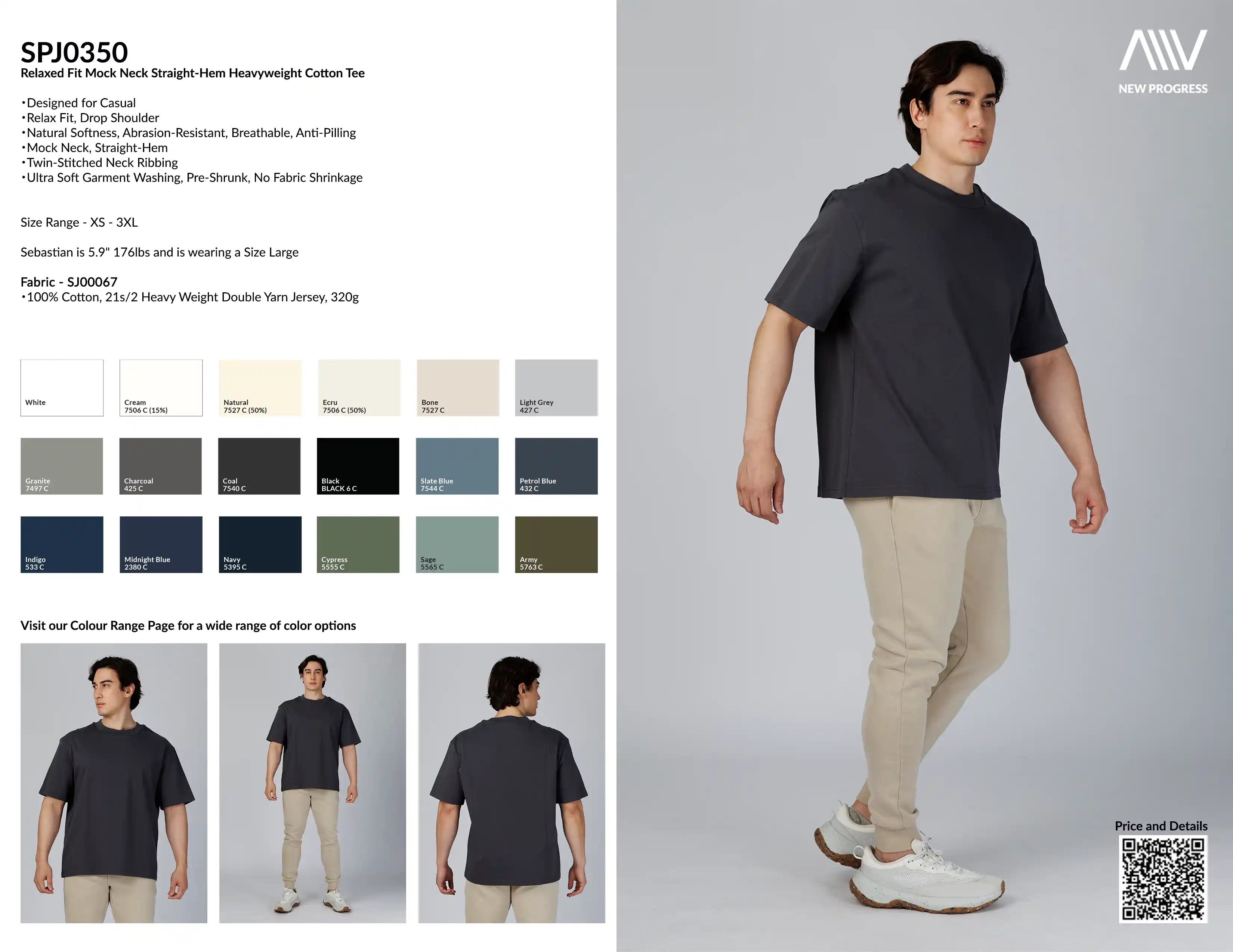SPJ0350 - Relax Fit Mock Neck Straight-Hem Heavyweight Cotton Tee - Black