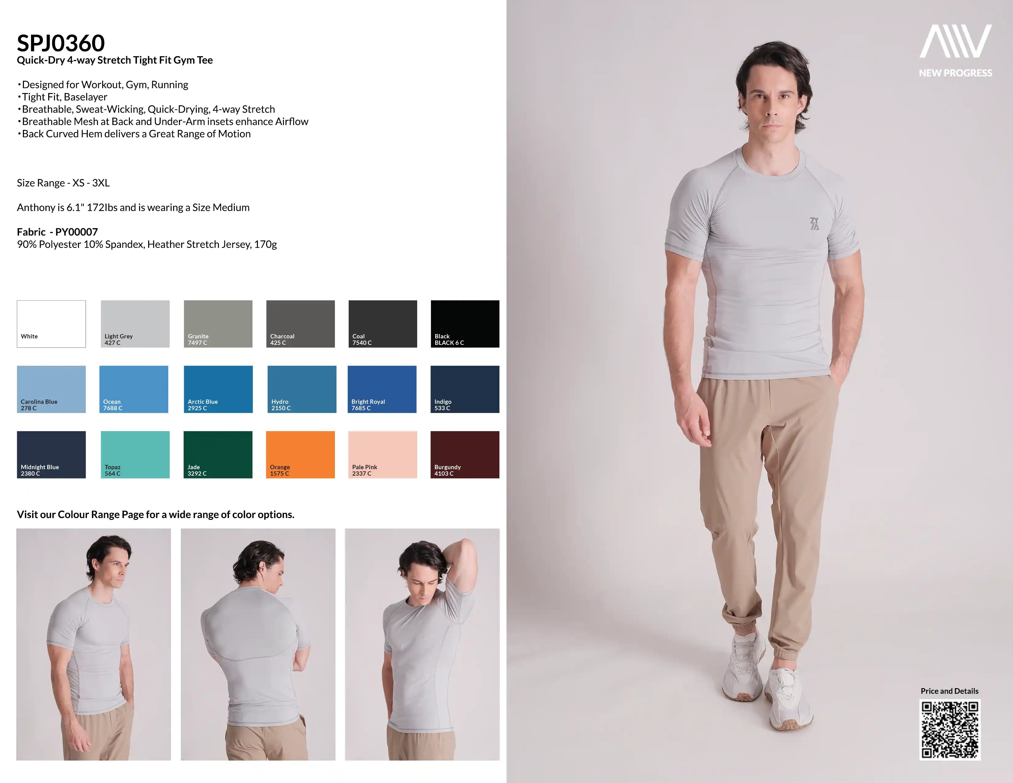 SPJ0360 - Quick-Dry 4-way Stretch Tight Fit Gym Tee - Light Grey