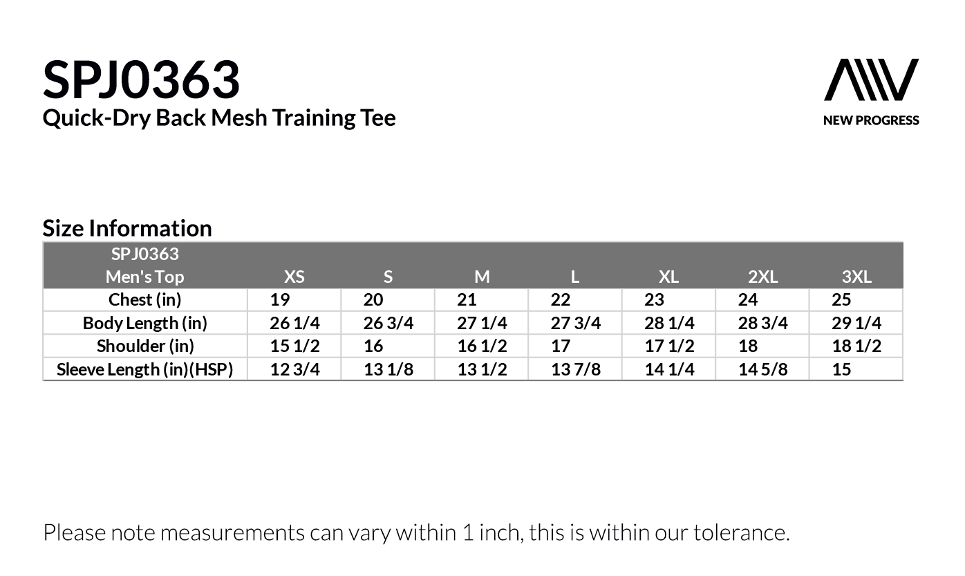 SPJ0363 - Quick-Dry Back Mesh Training Tee - Black