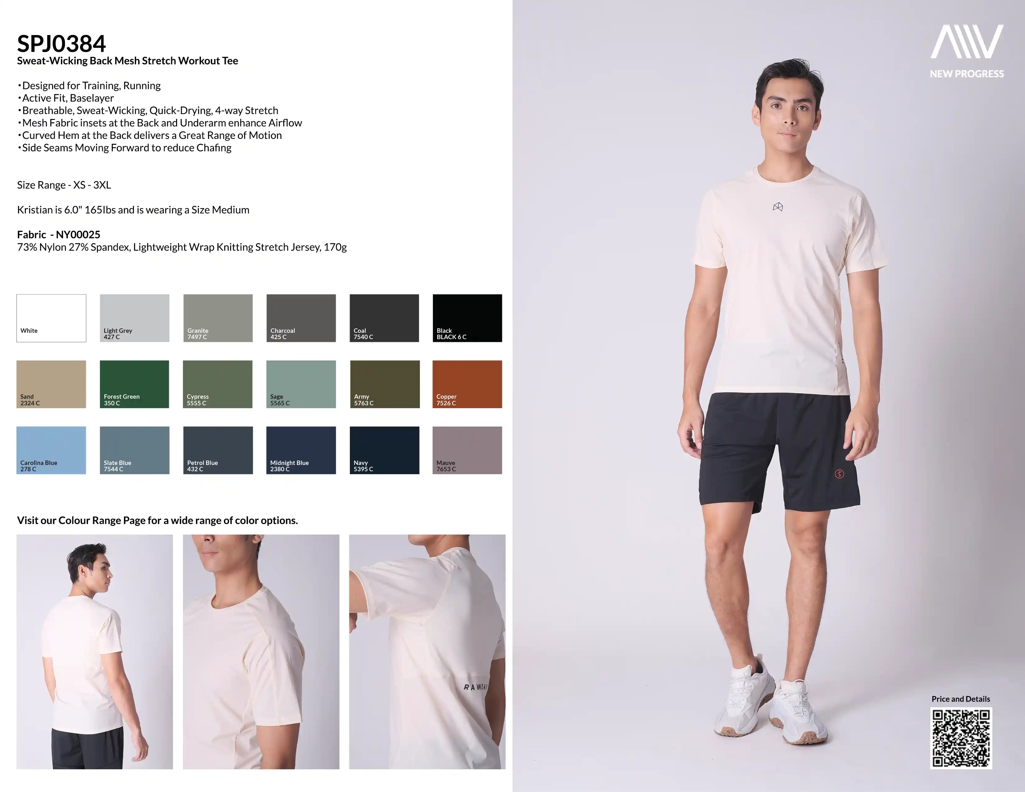 SPJ0384 - Cool Touch Breathable Back Mesh Workout Tee - Natural