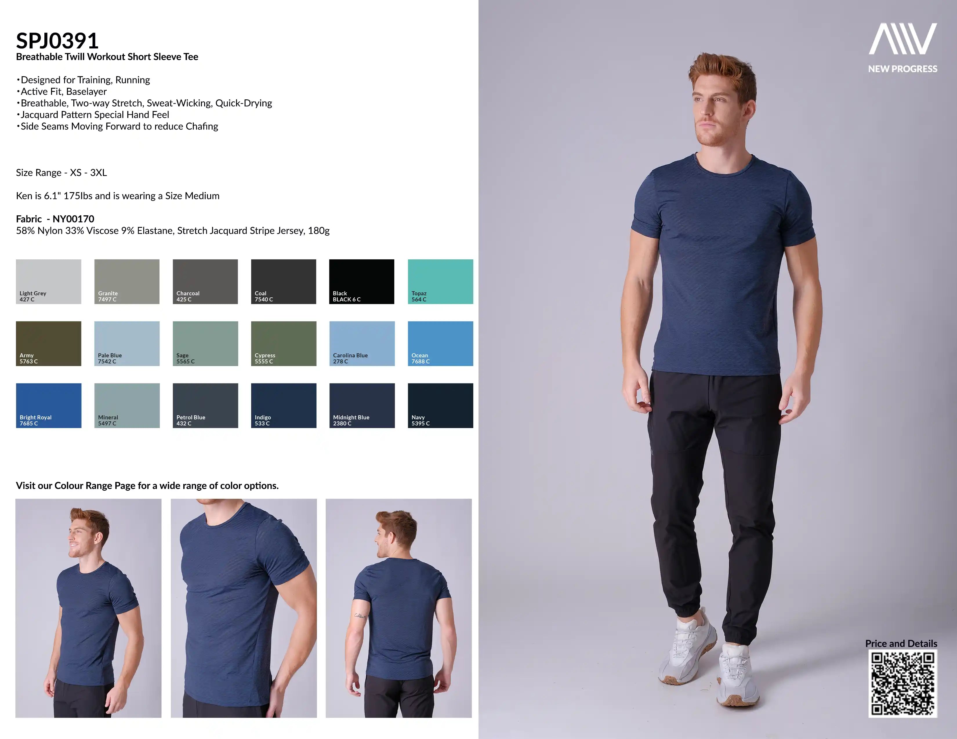 SPJ0391 - Breathable Twill Workout Short Sleeve Tee - Heather Cyan