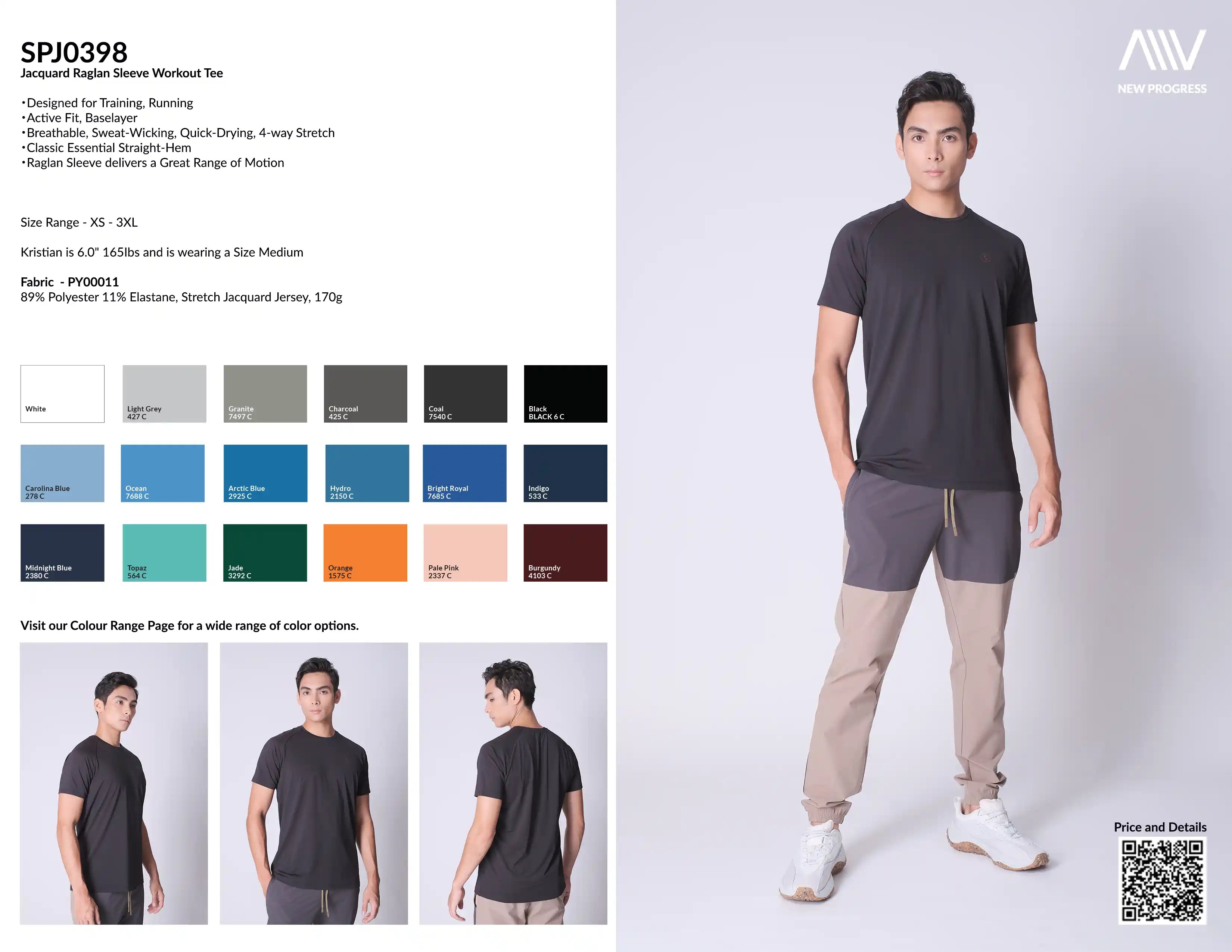 SPJ0398 - Jacquard Raglan Sleeve Workout Tee - Black