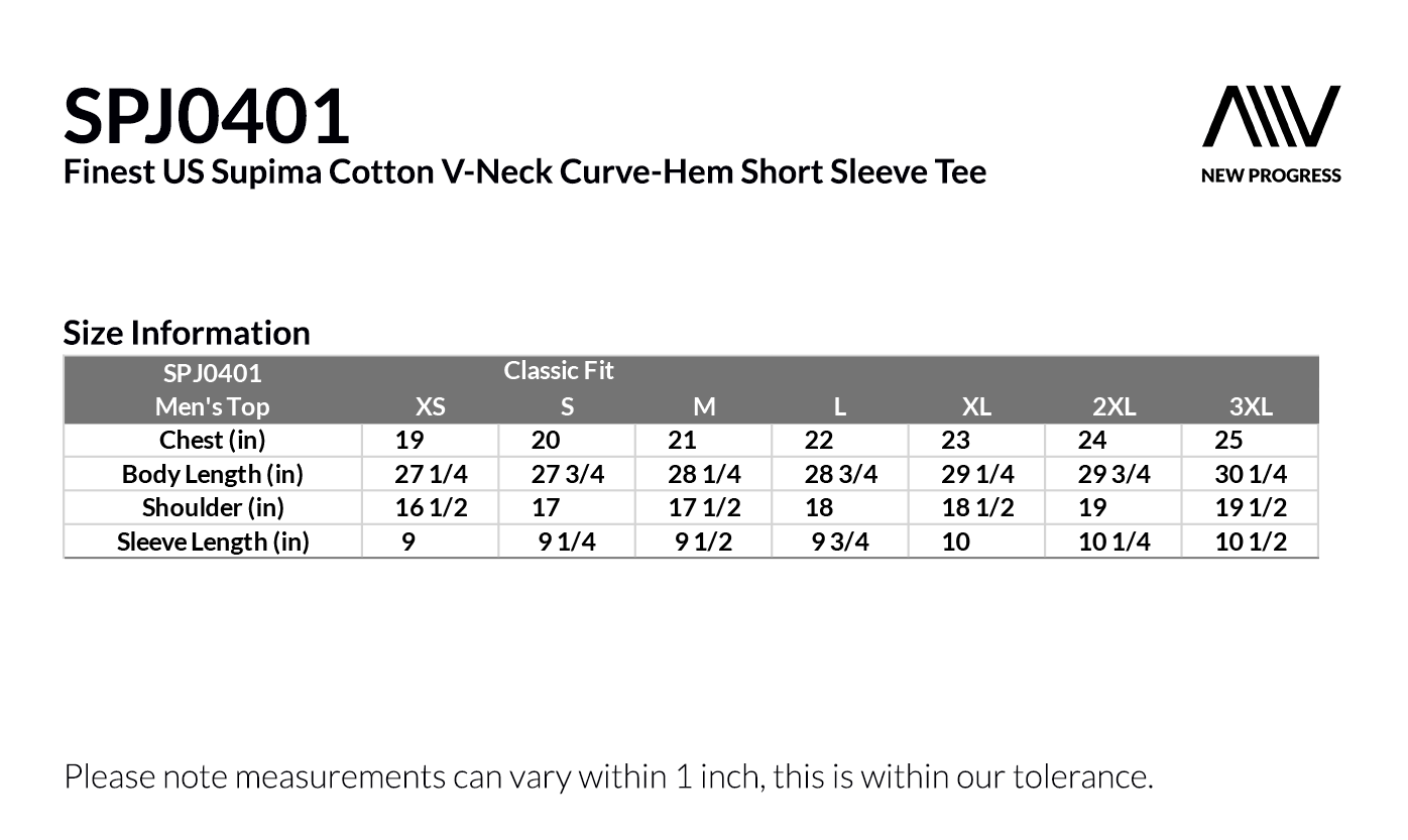 SPJ0401 - Finest US Supima Cotton V-Neck Curve-Hem Short Sleeve Tee - Black