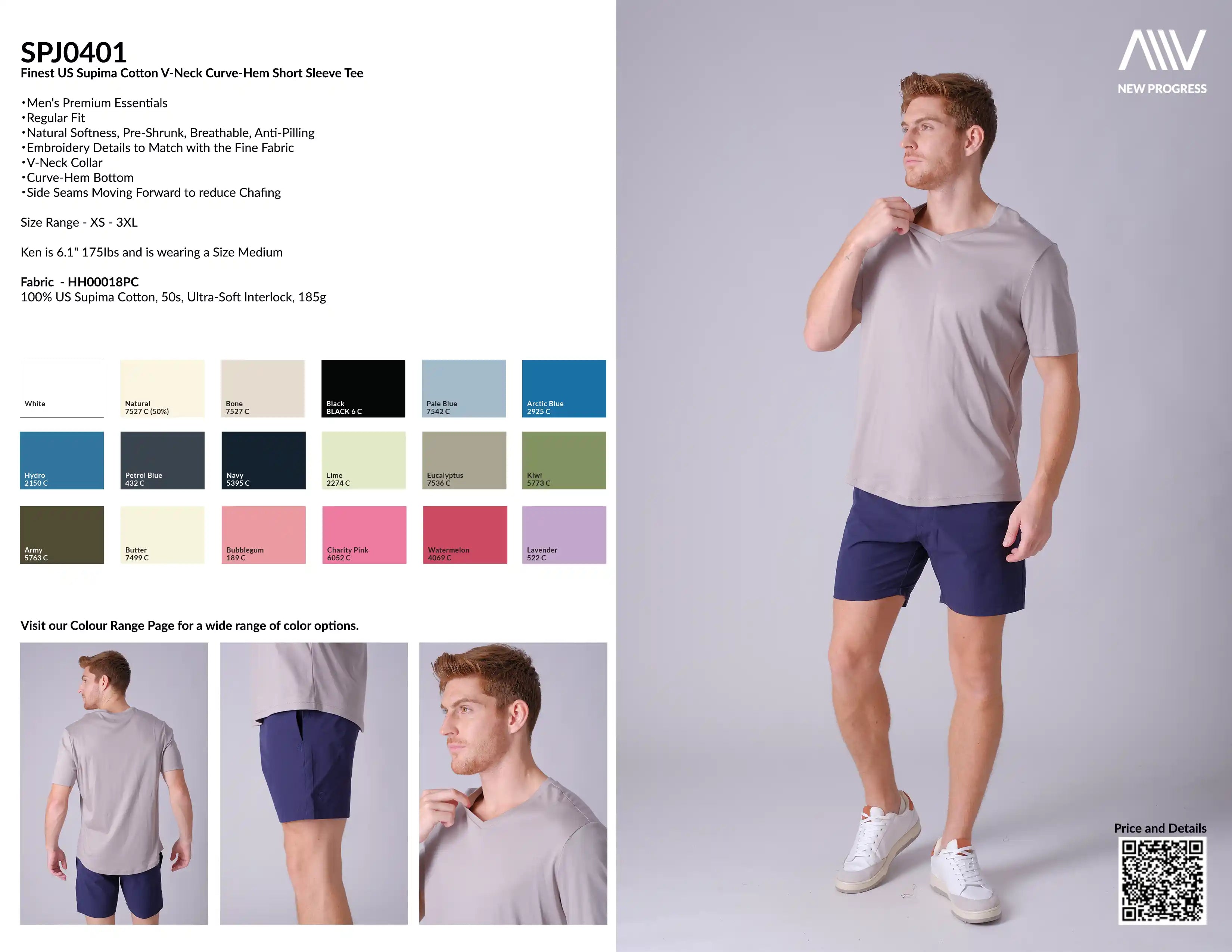 - 100% US Supima Cotton, 50s, Ultra-Soft Interlock, 185g