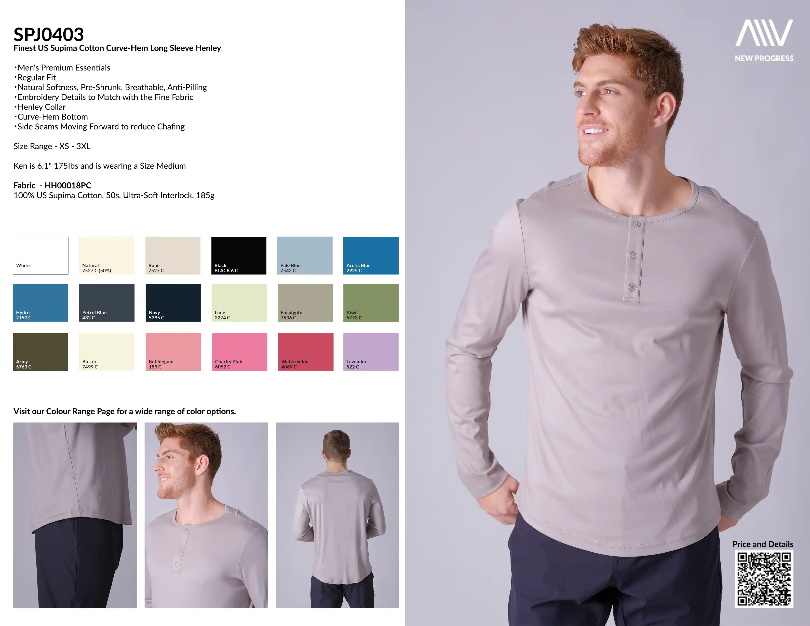 SPJ0403 - Finest US Supima Cotton Curve-Hem Long Sleeve Henley