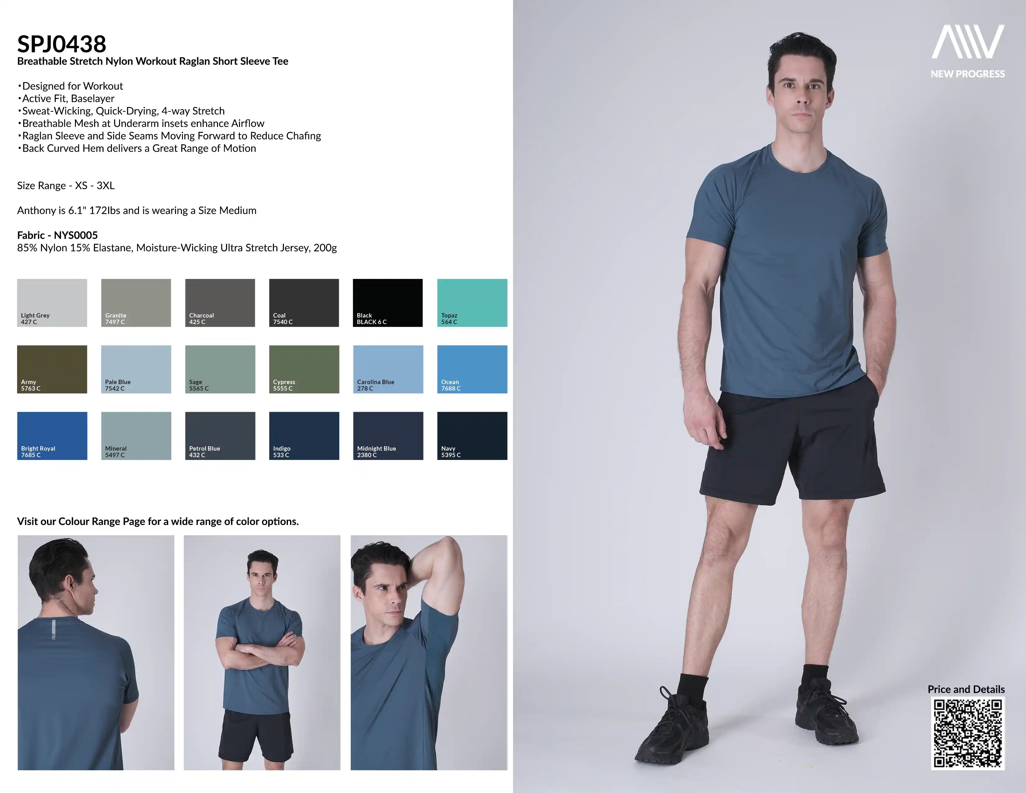 SPJ0438 - Ultra 4-Way Stretch Nylon Raglan Sleeve Training Tee - Ash Blue
