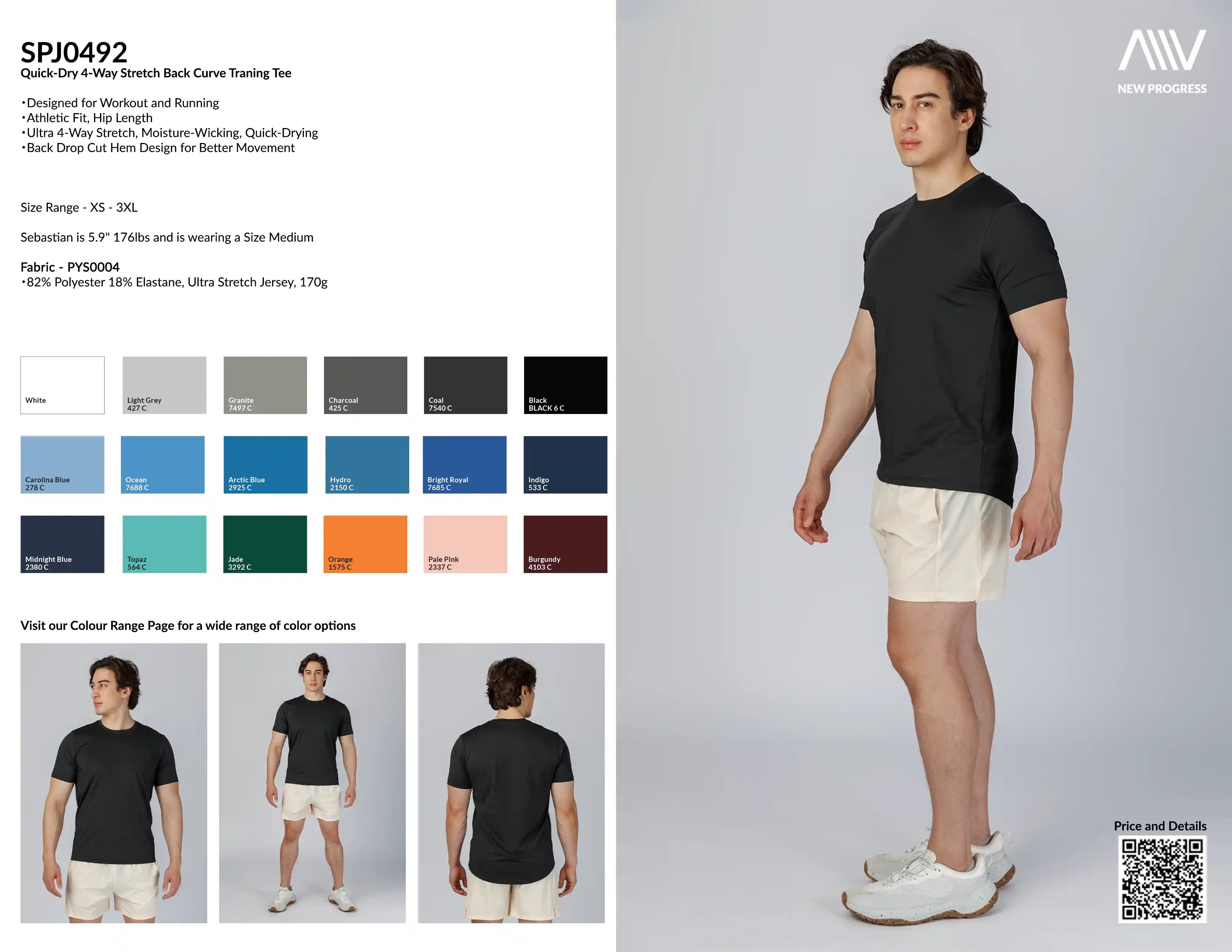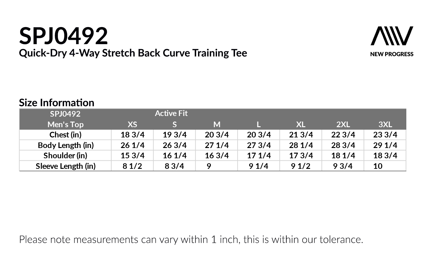 SPJ0492 - Quick-Dry 4-Way Stretch Back Curve Training Tee - Black