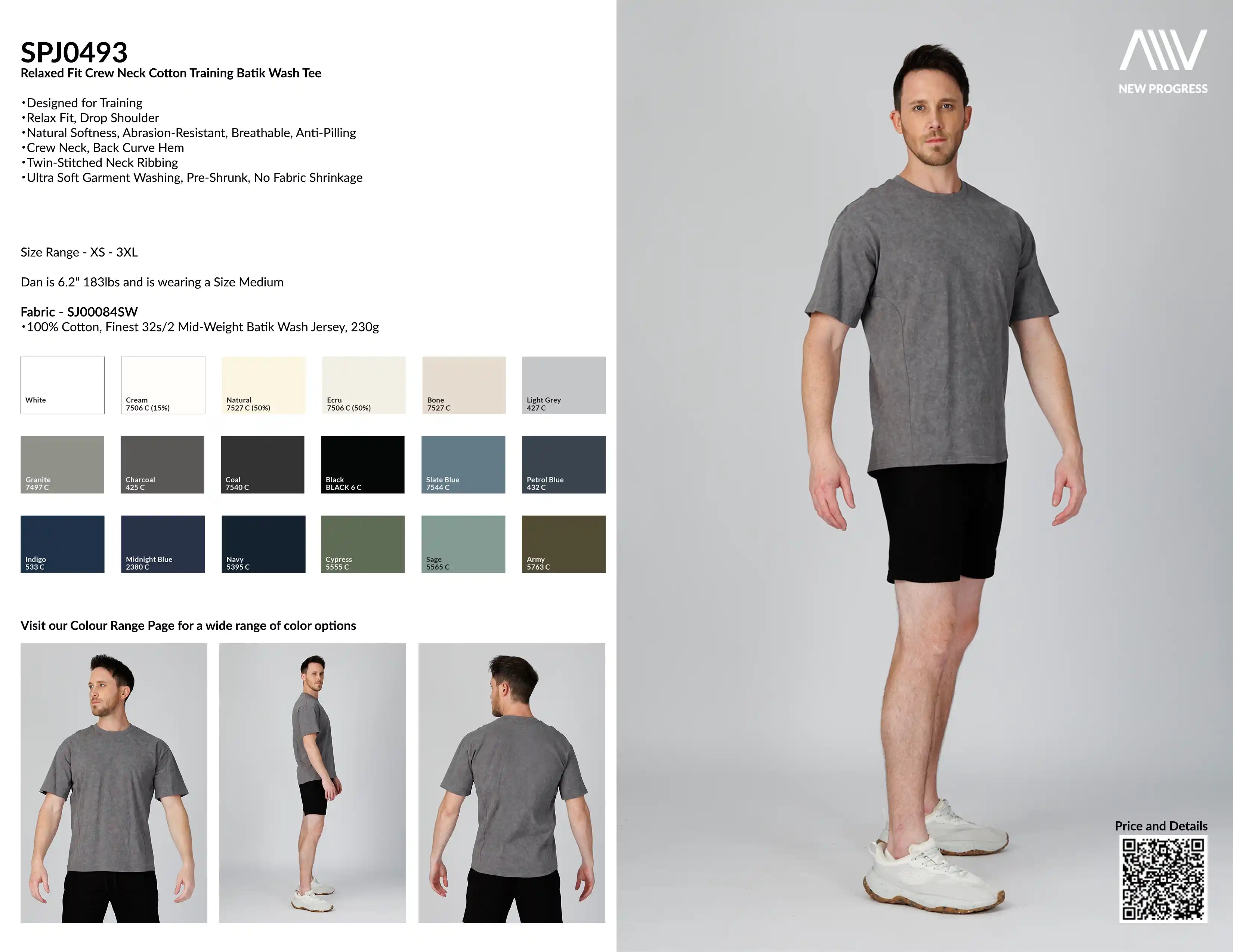 SPJ0493 - Relaxed Fit Crew Neck Cotton Training Batik Wash Tee - Washed Grey