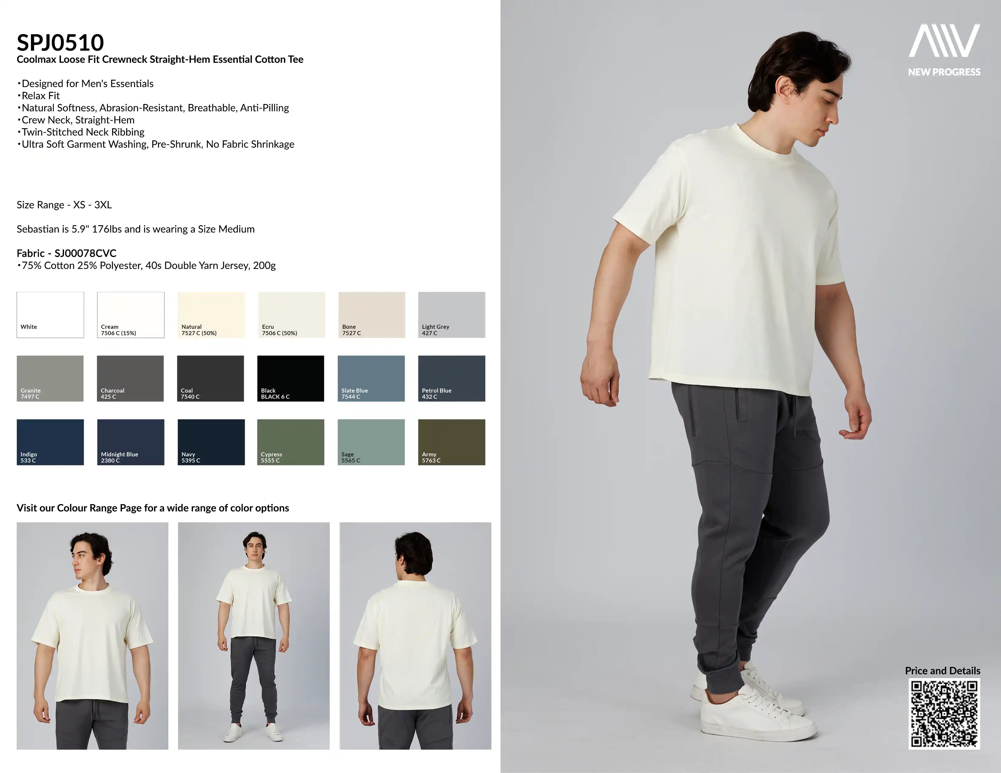 SPJ0510 - Coolmax Loose Fit Crewneck Straight-Hem Essential Cotton Tee - Black