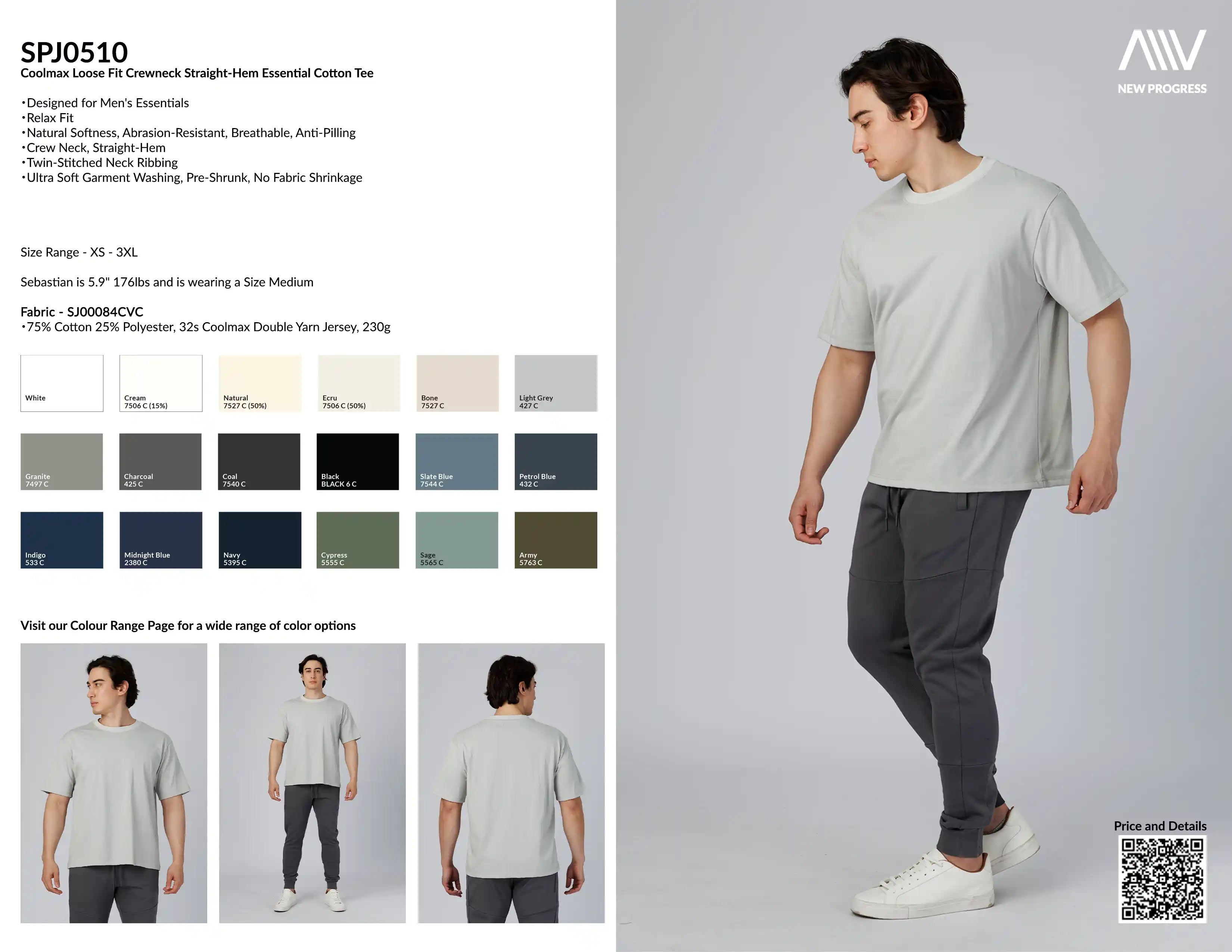 SPJ0510 - Coolmax Loose Fit Crewneck Straight-Hem Essential Cotton Tee - Light Grey