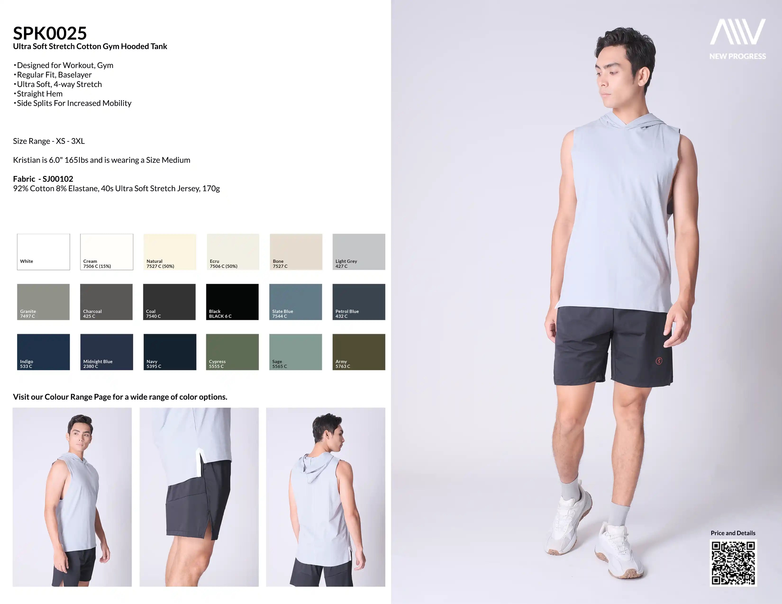 SPK0025 - Ultra Soft Stretch Cotton Gym Hooded Tank - Black