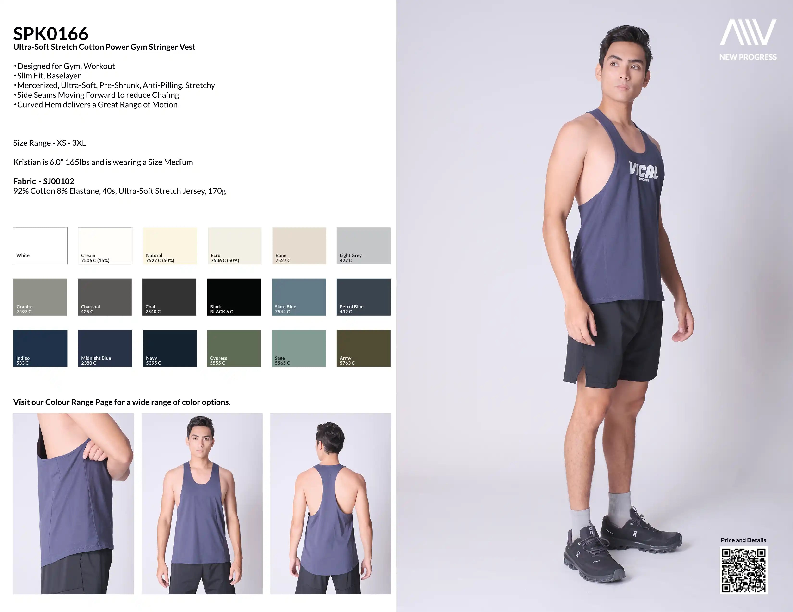 SPK0166 - Ultra-Soft Stretch Cotton Power Gym Stringer Vest - Black