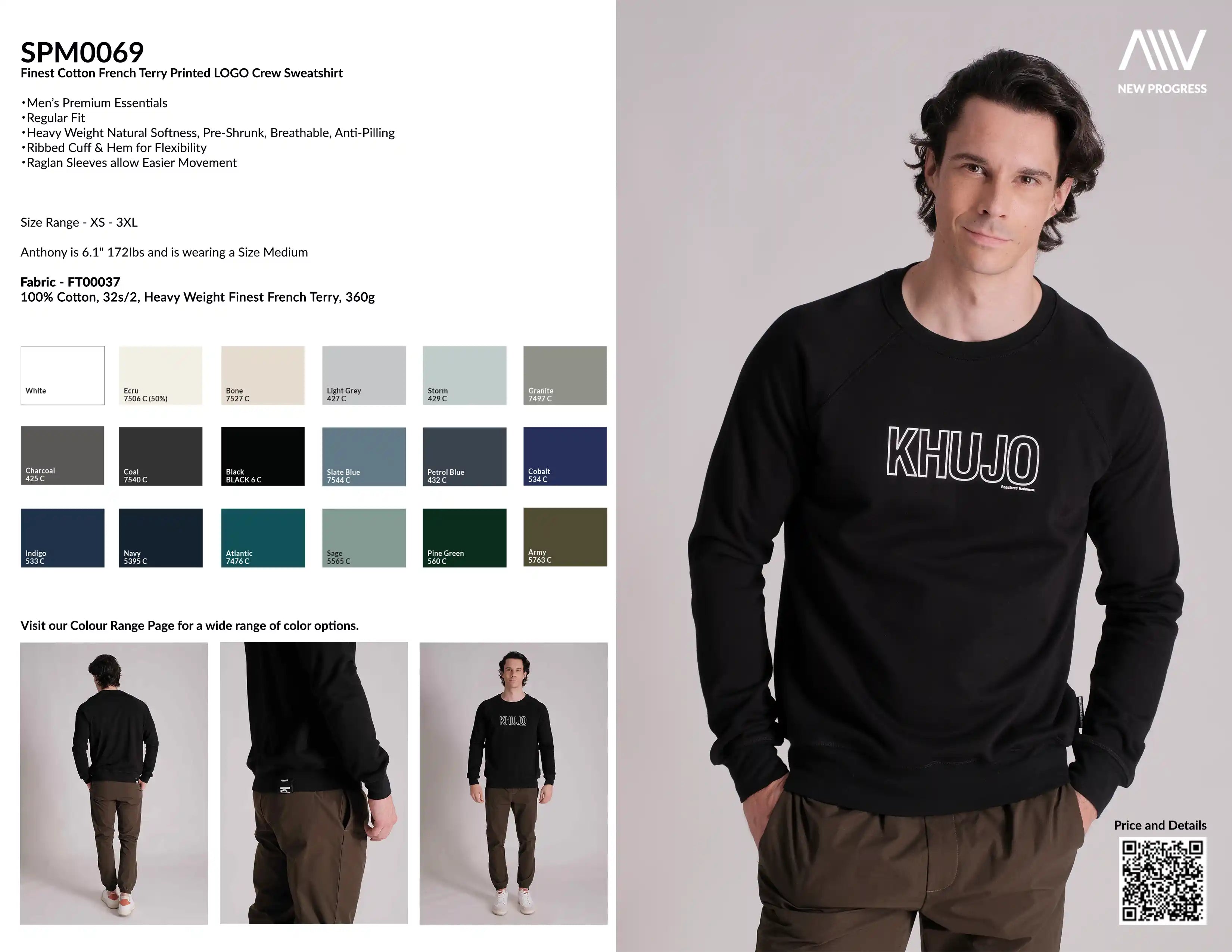 - 100% Cotton, 32s/2, Heavy Weight Finest French Terry, 360g