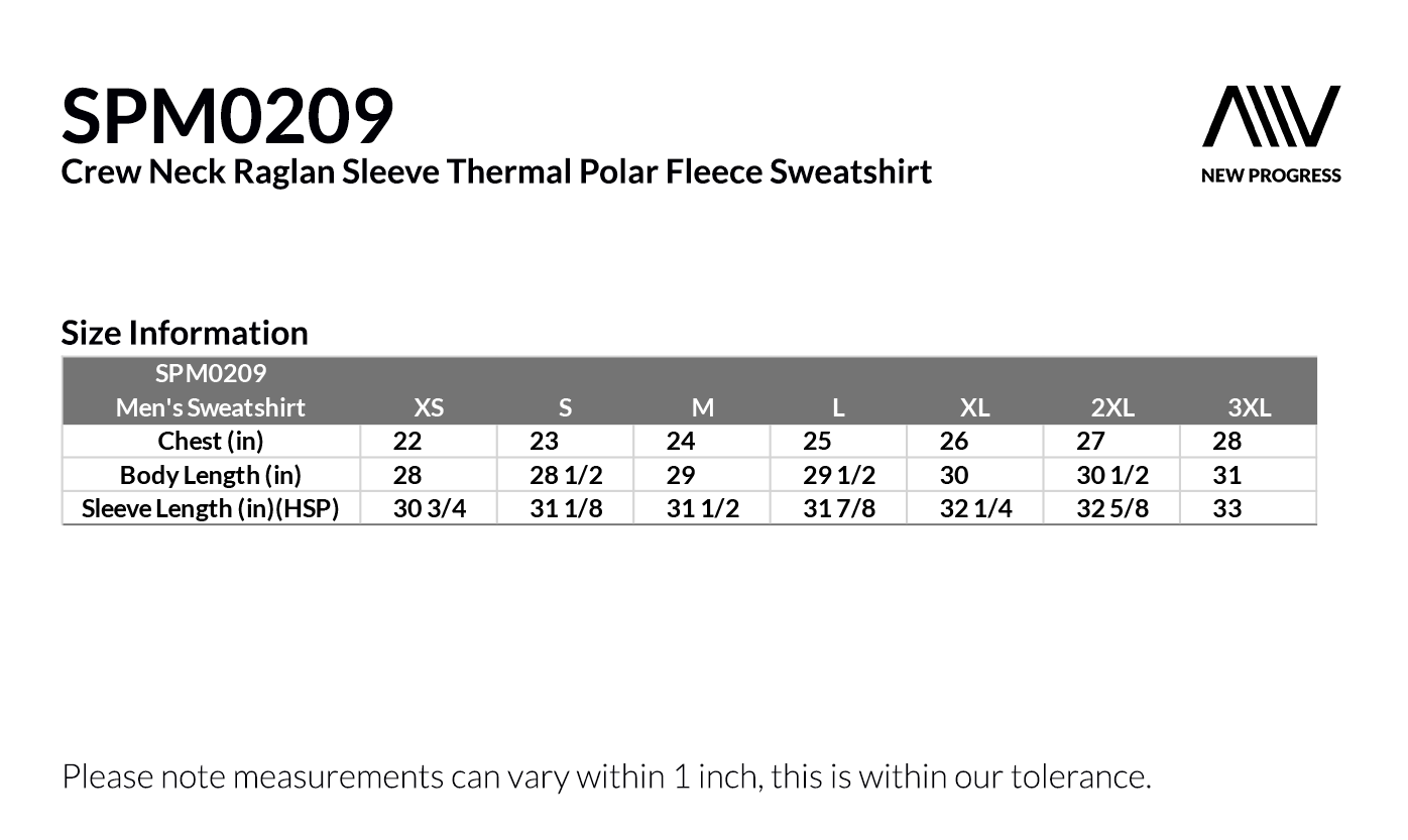 SPM0209 - Crew Neck Raglan Sleeve Thermal Polar Fleece Sweatshirt - Black