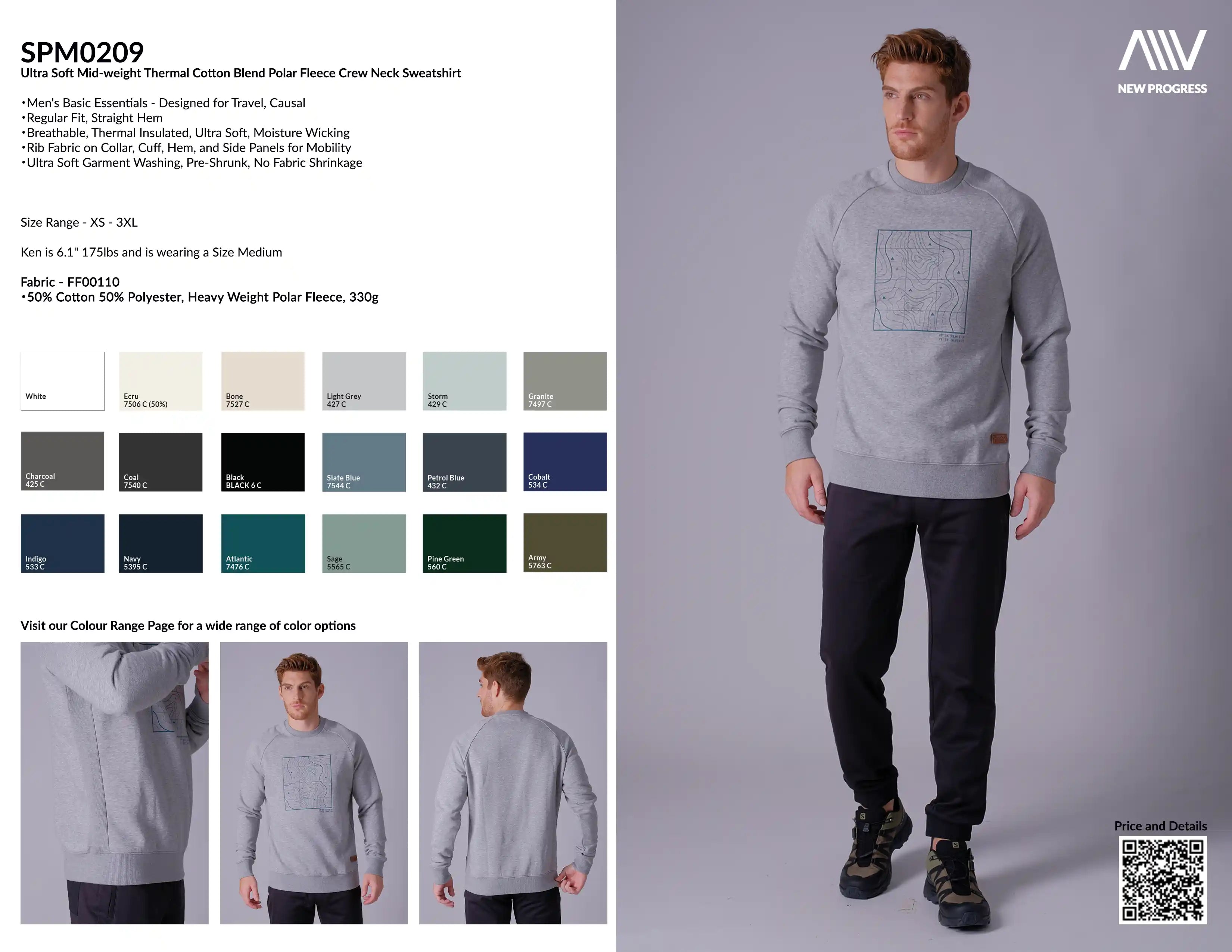 ・60% Cotton 40% Polyester, Mid Weight Thermal Polar Fleece, 360g