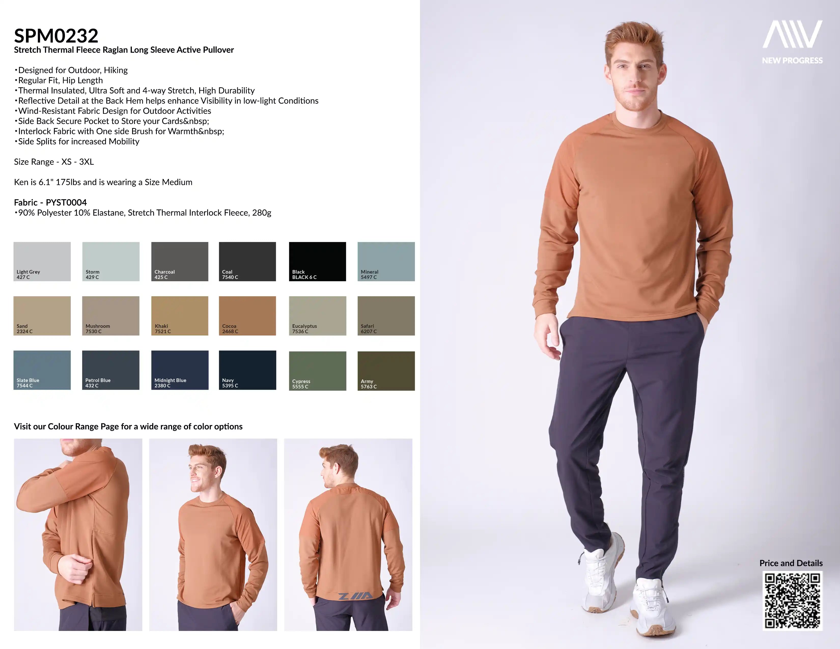 SPM0232 - Stretch Thermal Fleece Raglan Long Sleeve Active Pullover - Orange