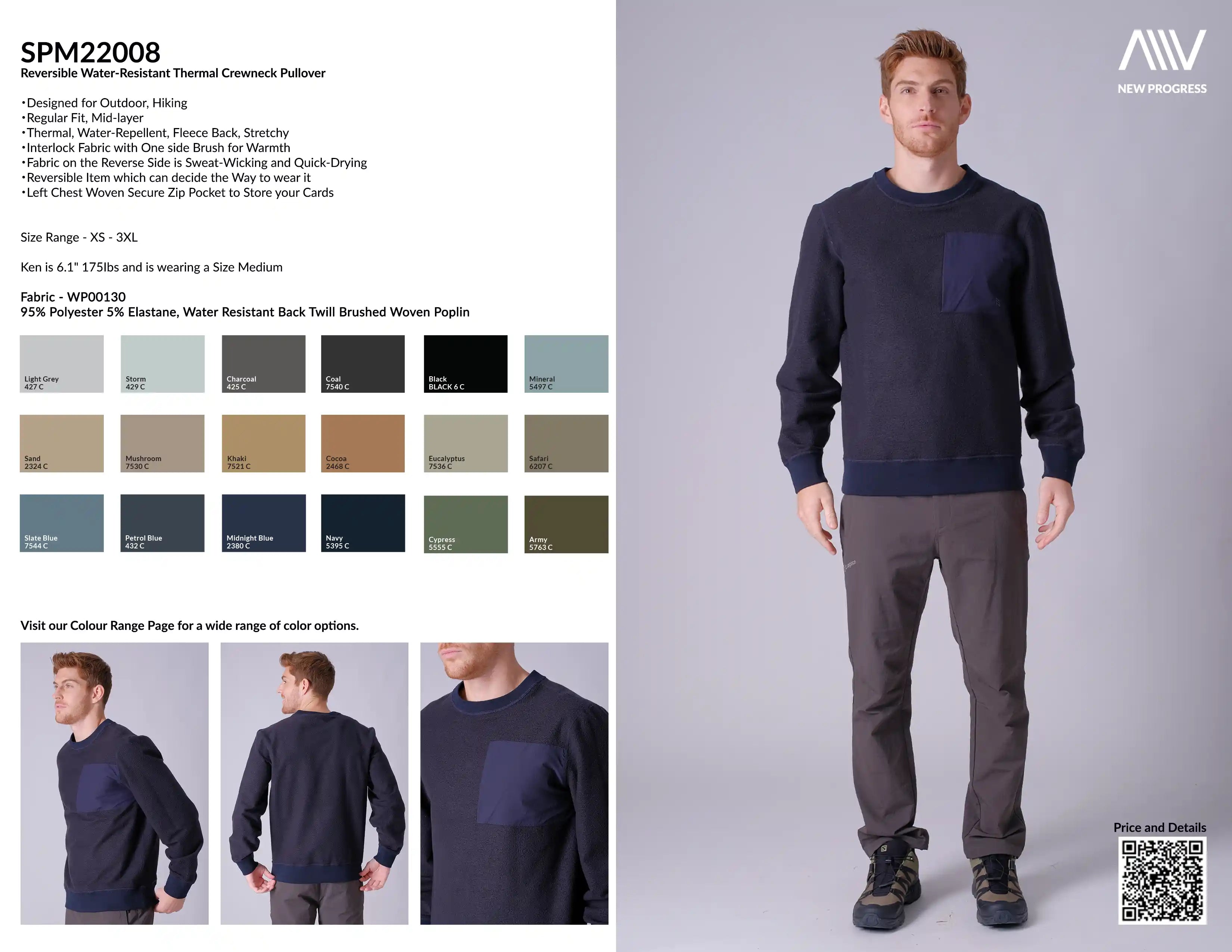SPM22008 - Reversible Water-Resistant Thermal Crewneck Pullover - Navy