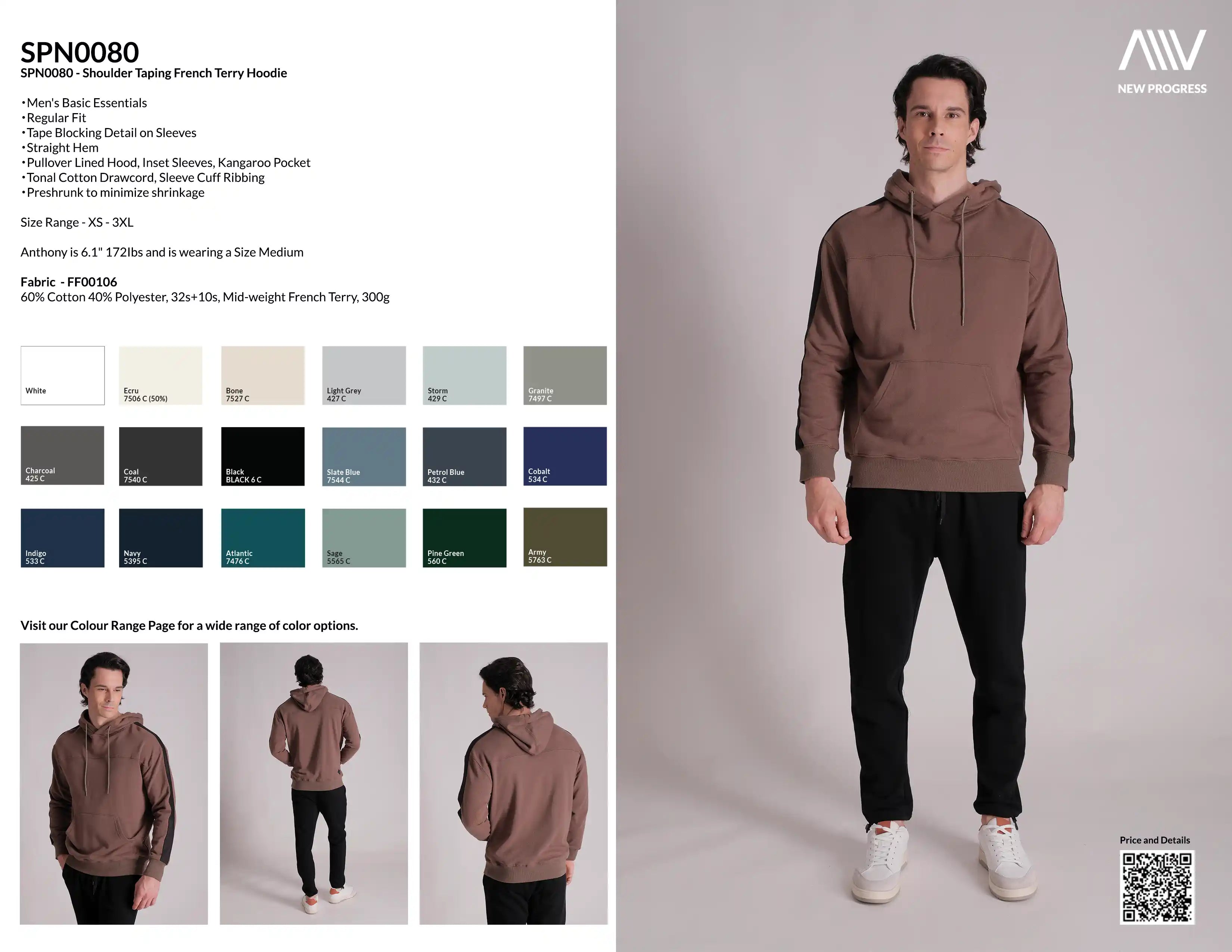 - 60% Cotton 40% Polyester, 32s+10s, Mid-weight French Terry, 300g