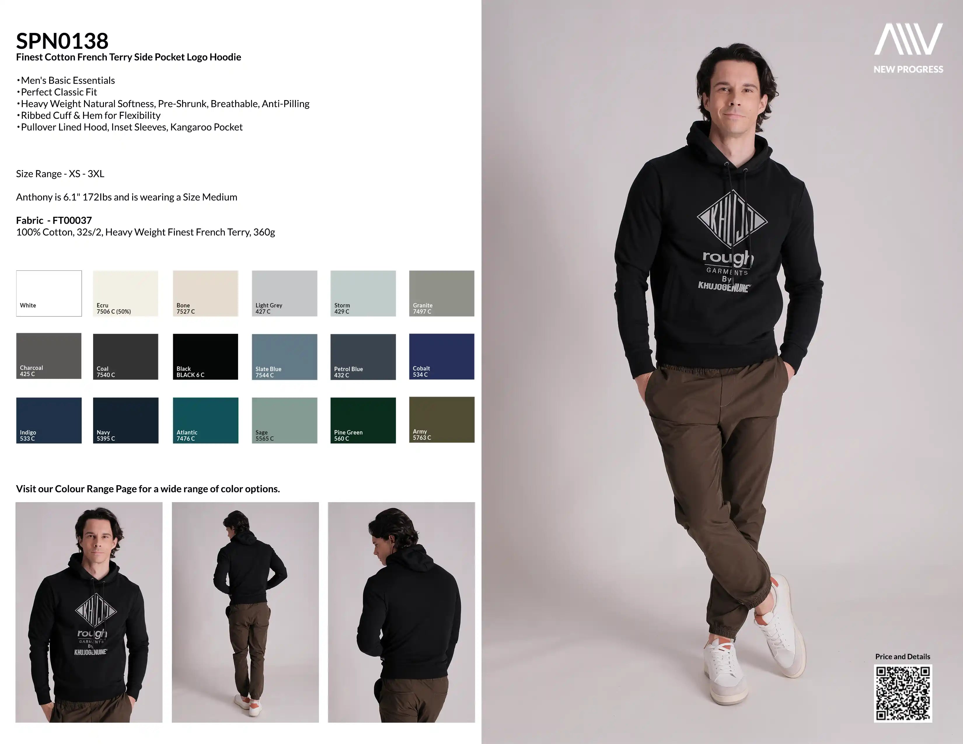 - 100% Cotton, 32s/2, Heavy Weight Finest French Terry, 360g