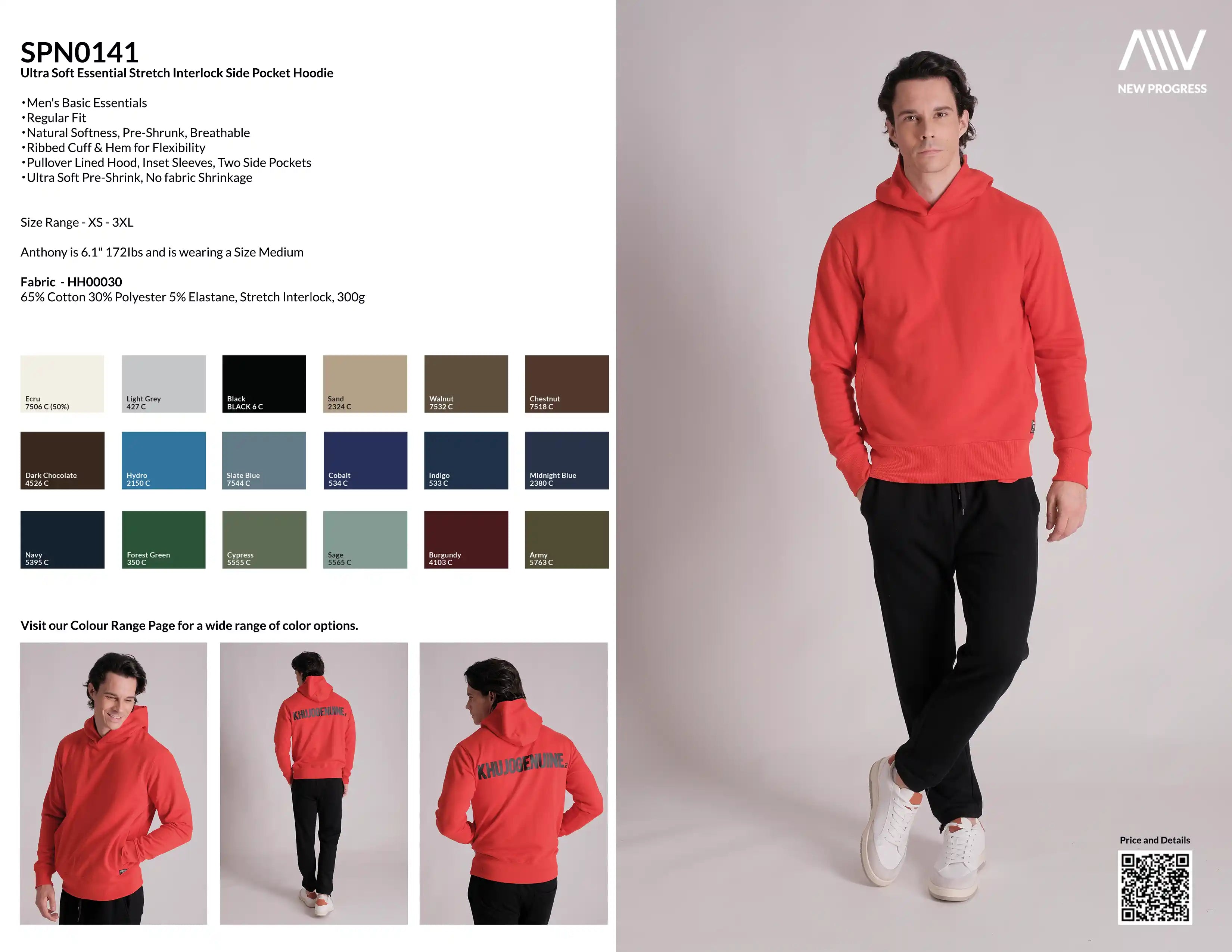 SPN0141 - Ultra Soft Essential Stretch Interlock Side Pocket Hoodie - Red